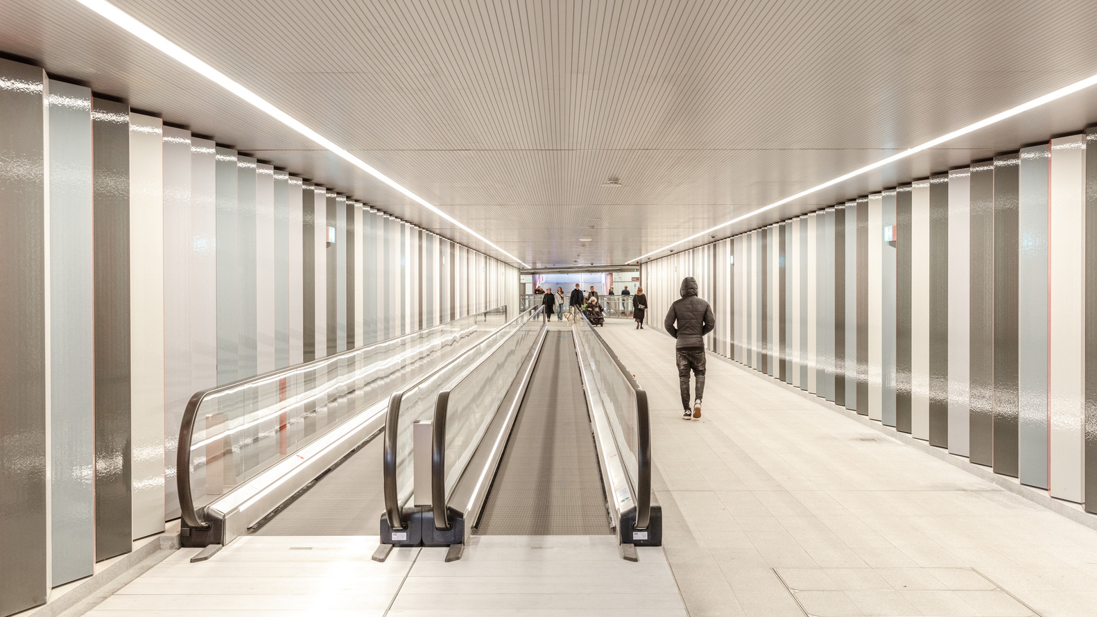 Stanice Orientkaj vzdává svou podobou hold velkému měřítku přístaviště i jeho estetice. Samotná hala nástupiště je pokryta eloxovanými vlnitými plechy, pilová střecha pak díky světlíkům interiér zaplavuje denním světlem. Prosklené stěny nástupišť cestujícím umožňují výhledy po celé této nové městské čtvrti.