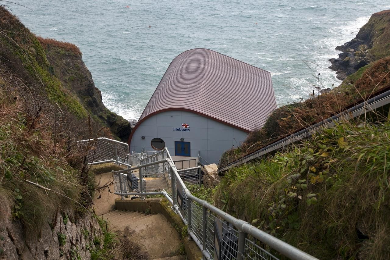 Nová stanice záchranného člunu Královského národního záchranného institutu v Lizardu je chráněna zakřiveným měděným povrchem, který dokáže odolávat extrémně agresivnímu pobřežnímu prostředí jedinečné polohy nejjižnějšího bodu Anglie.
