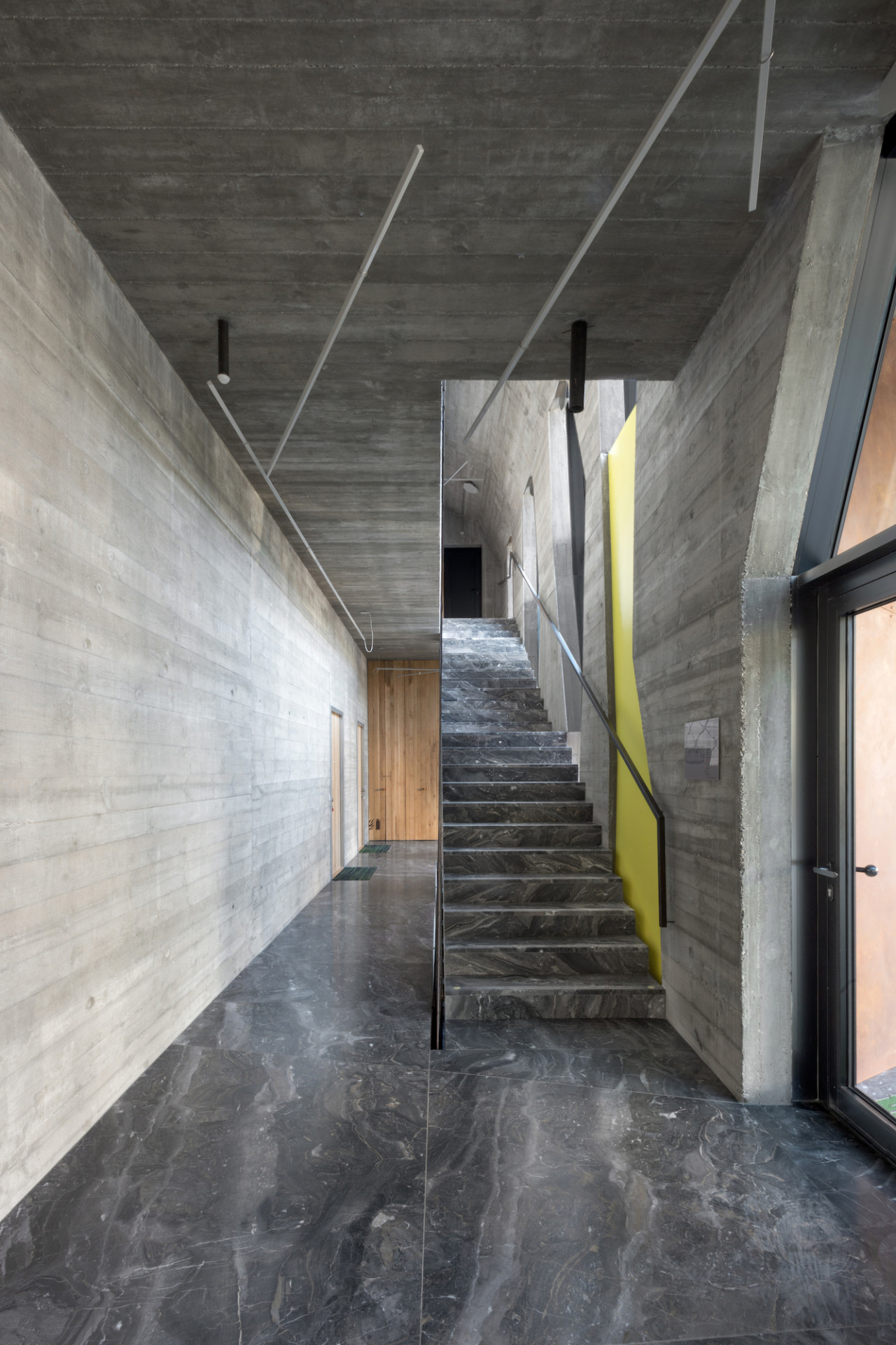 Punc velkorysosti dodávají budově kromě prostorných dispozic především vybrané materiály. Jejich skladba i užití odpovídá rukopisu Stanislava Fialy. Dominuje jim zručná práce s pohledovým betonem, který se odhaluje v několika částech budovy. Na podlahy chodeb a koupelen pak architekti použili italský mramor, který podtrhuje celkovou úroveň prostor. Podlahy bytů pak tvoří masivní bílý dub. Pozornosti nemůže uniknout ani celá řada detailů, které byly provedeny s maximální pozorností.