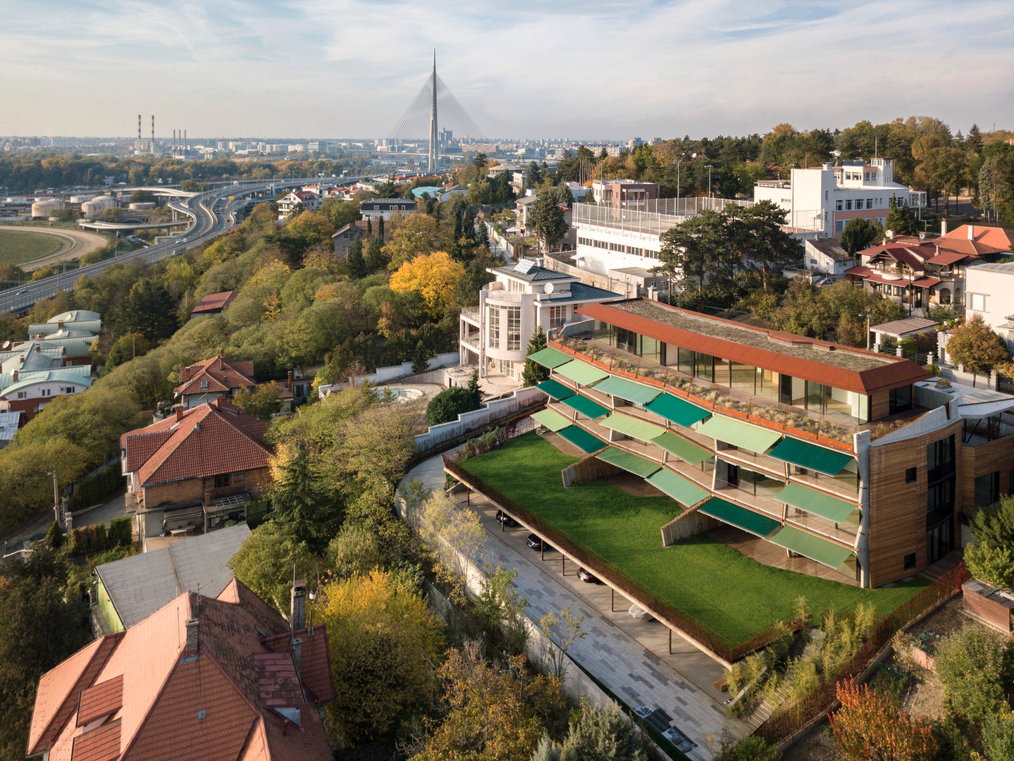 Právě možnosti panoramatických pohledů na město využívá také nový apartmánový dům, který v Senjaku nedávno dokončila architektonická kancelář FIALA+NEMEC. Jako mnoho předchozích projektů (DRN na Národní třídě v Praze nebo rekonstrukci pražského Paláce Špork) navrhl tuto budovu tým pod vedením architekta Stanislava Fialy pro developerskou společnost SEBRE. Projekt bytového domu s apartmány ve vysokém standardu přitom stál u začátků podnikatelských aktivit SEBRE v srbské metropoli – i proto mu byla také věnována patřičná pozornost.