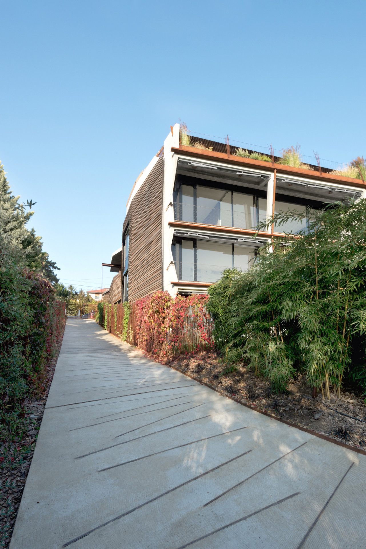 „Počáteční záměr vytvořit bytový dům, který by uživatelům nabídl pohodlí, individualitu a soukromí rodinného domu, je na výsledku znát. Svažitý terén umožnil poměrně velký objem ukrýt ve vrstvách mnohaúrovňové zahrady, která je schopna nabízet uživatelům bytů pocit soukromí a individuálního komfortu,“ popisuje koncept návrhu Stanislav Fiala.