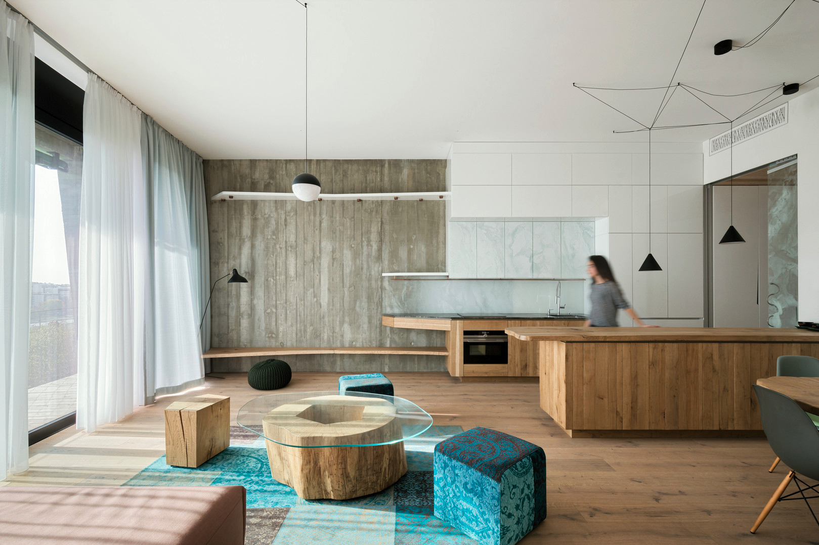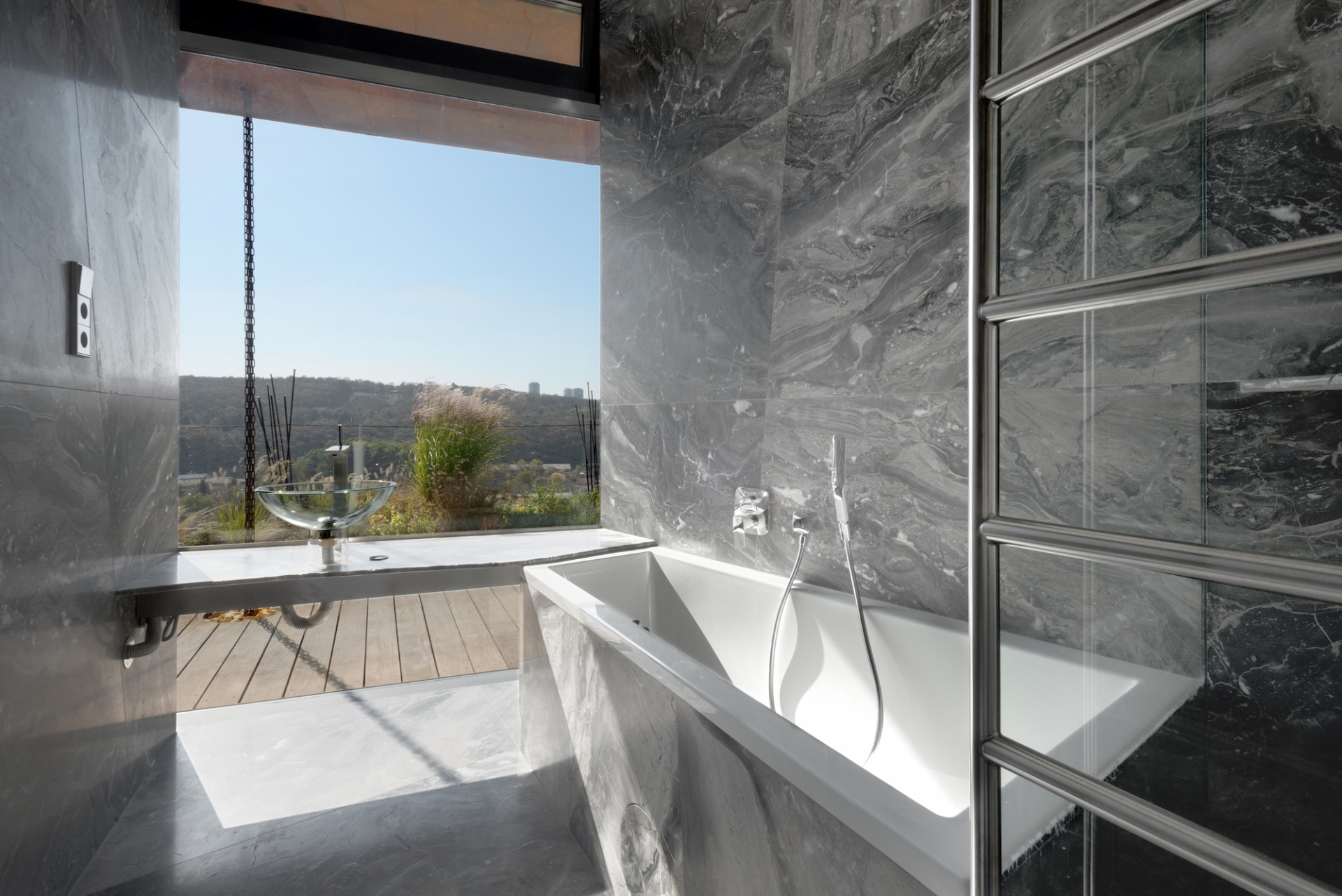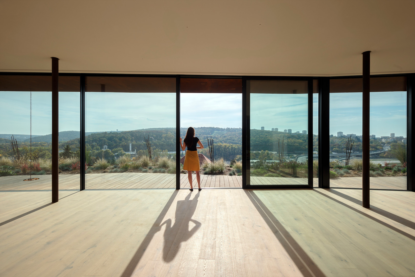 Hlavní charakteristikou všech bytů jsou velkolepé výhledy, kterým se do jisté míry podřizuje prostorové řešení dispozic i celého domu. Byty otevírá terasám a pohledům na metropoli velkoplošné zasklení stěn díky použitým systémům Schüco. Zvenku je přitom cloní výrazné barevné markýzy.