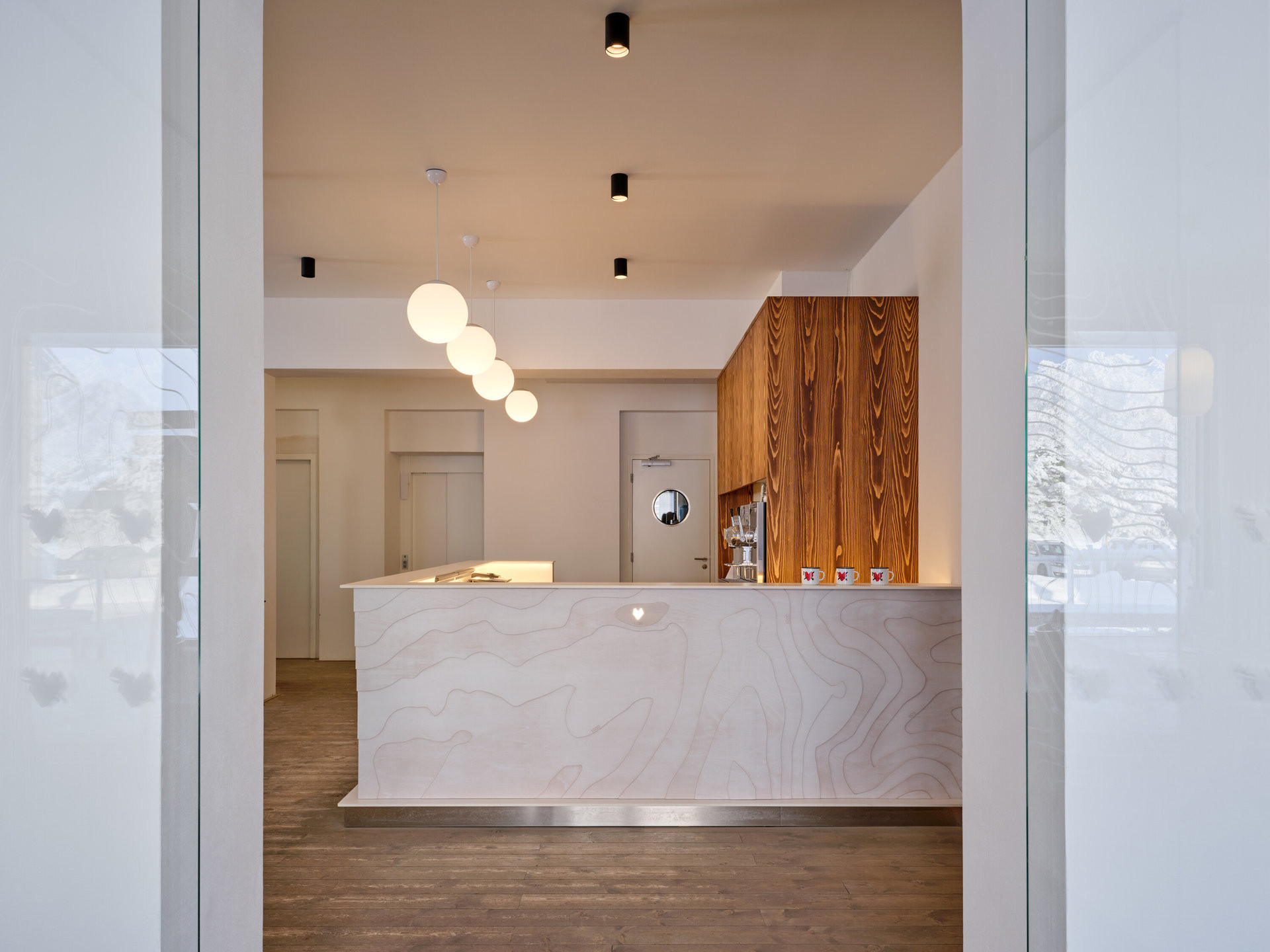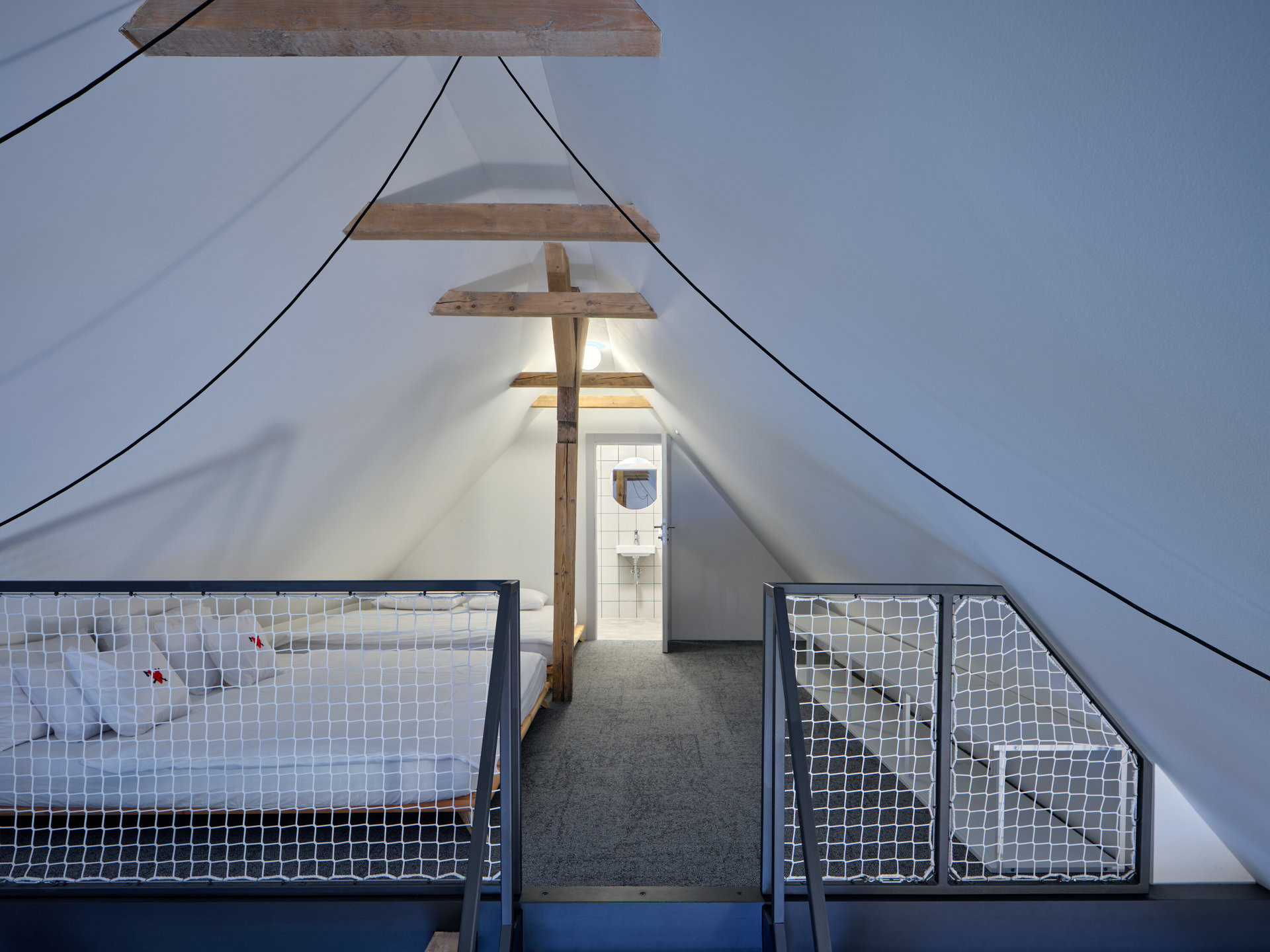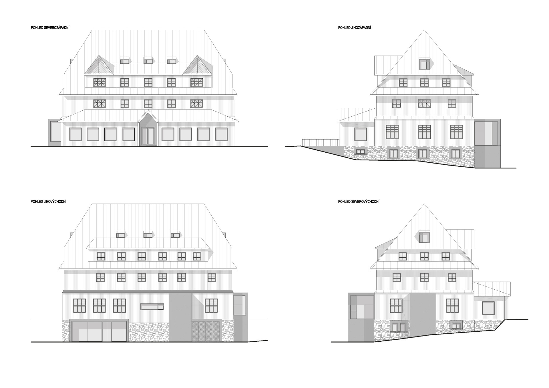 V Hořci postupovali architekti z ADR podobně, přestavba však byla ještě důkladnější. Nová je střecha, obvodový plášť včetně oken a dveří a zcela nové je i vnitřní uspořádání. Dříve tu bylo osmdesát malých pokojů, teď se do dvou rozlehlých apartmánů vejde maximálně 20 lidí, standard je ale na vysoké úrovni. Mají k dispozici ložnice, obývací pokoj i kuchyni. Zbytek domu je veřejně přístupný a jsou tu různé služby, které na Pomezních boudách zatím chyběly včetně půjčovny lyží či obchodu.