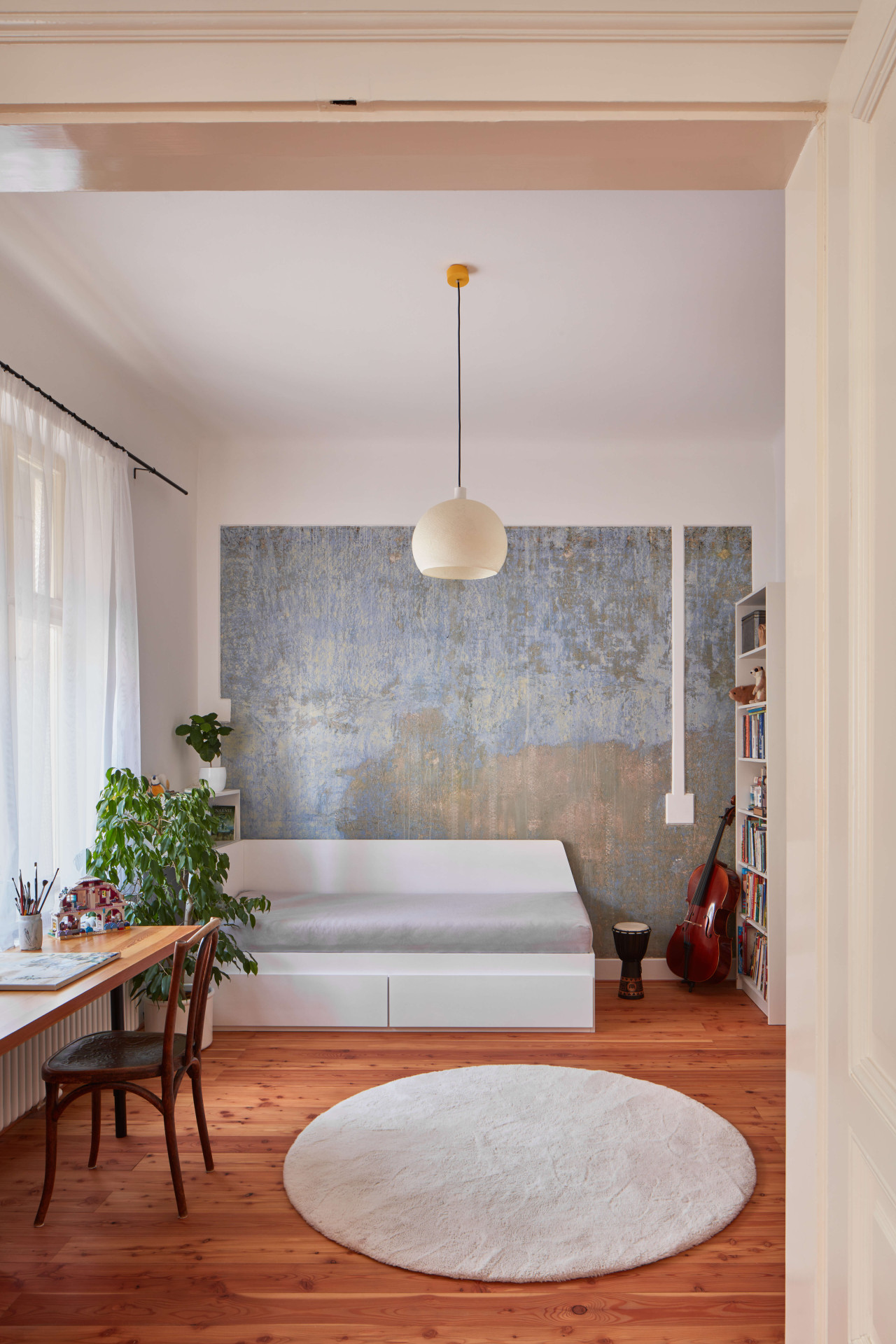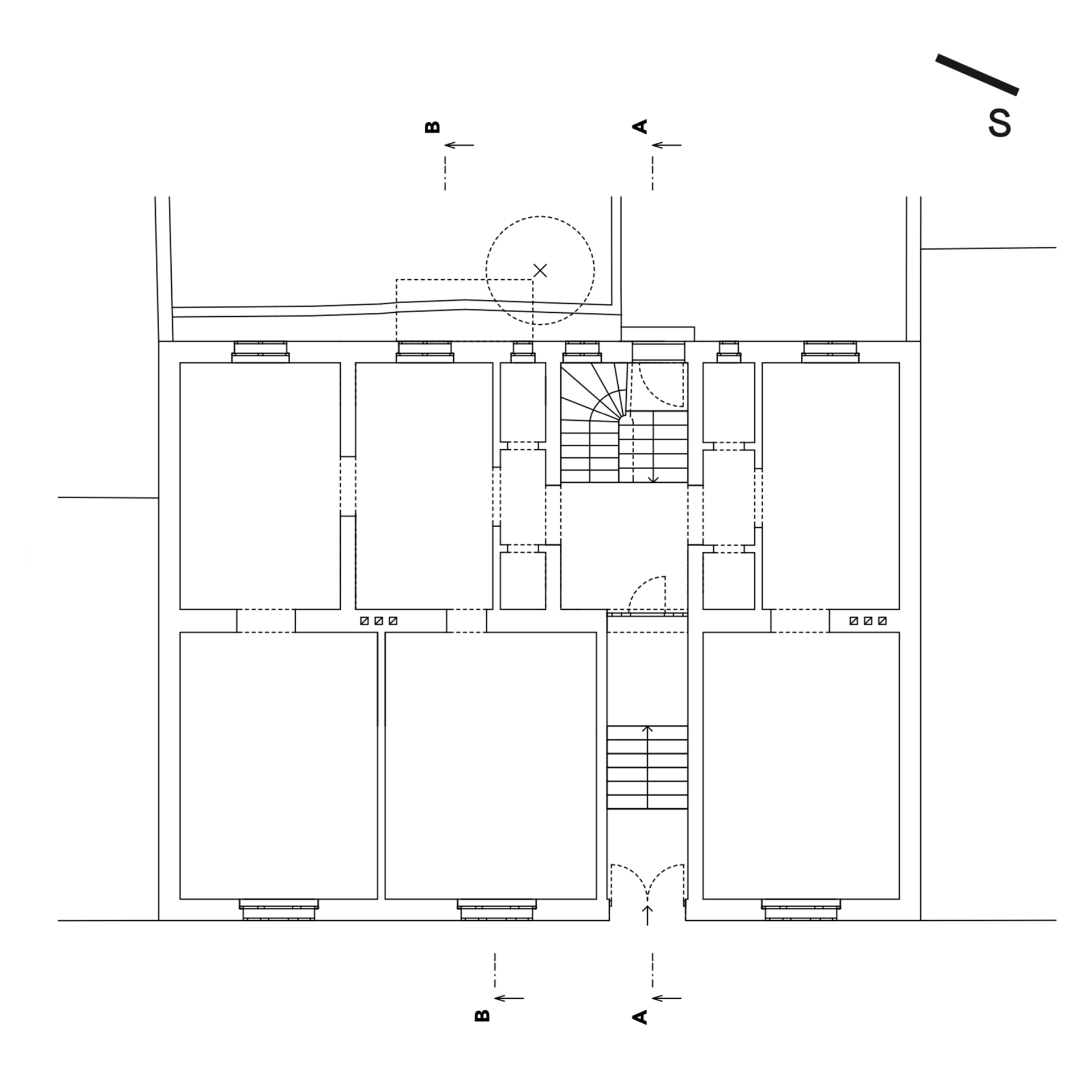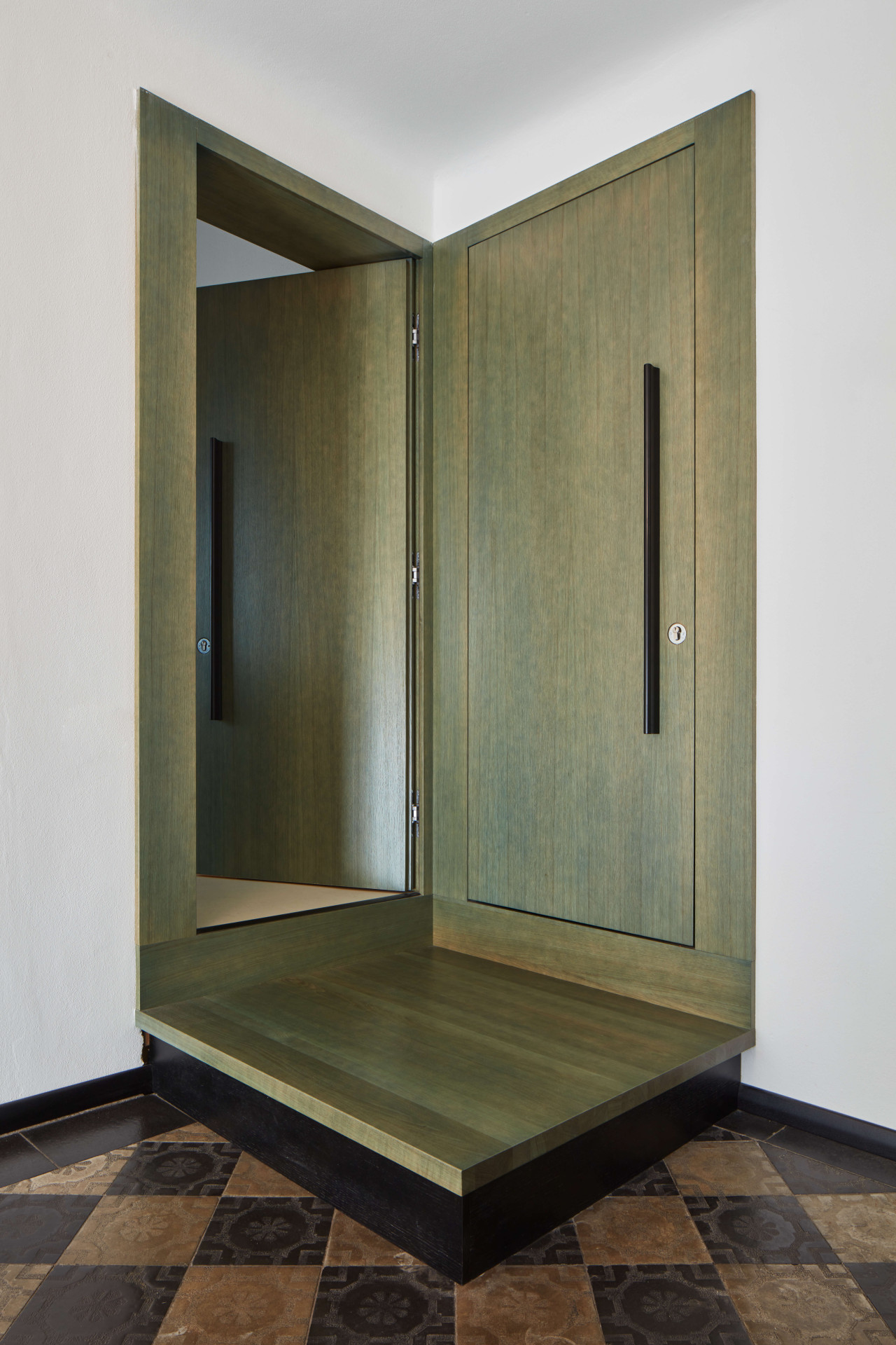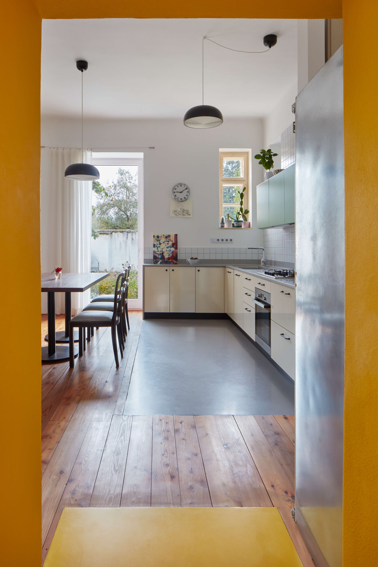 Do jednotek bylo potřeba vložit nové funkce, hlavně koupelny. Ty architekti pojali jako moderní a jasně rozpoznatelné intervence. V největším bytě, který je v přízemí, má nově vložené jádro, které obsahuje kromě koupelny i šatnu, žlutou barvu. Vedou ním také dva průchody, úzké brány, kterými se vchází do pokojů za nimi.