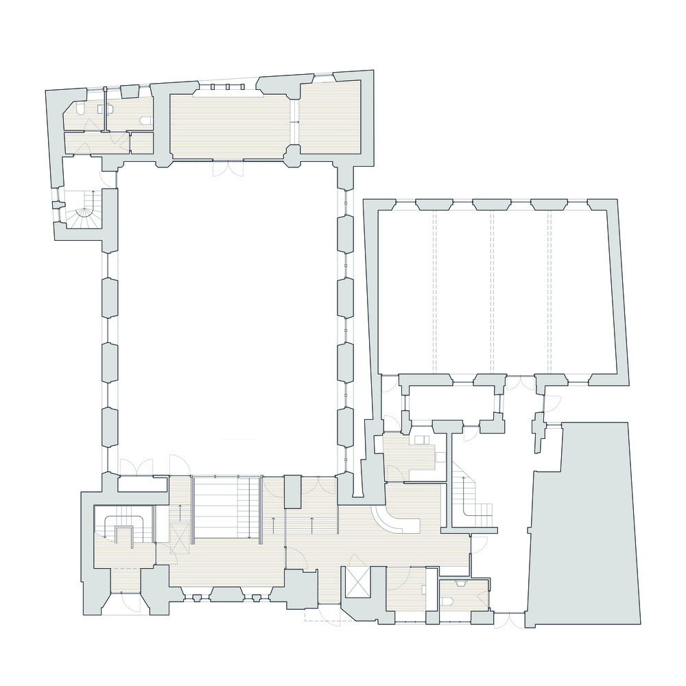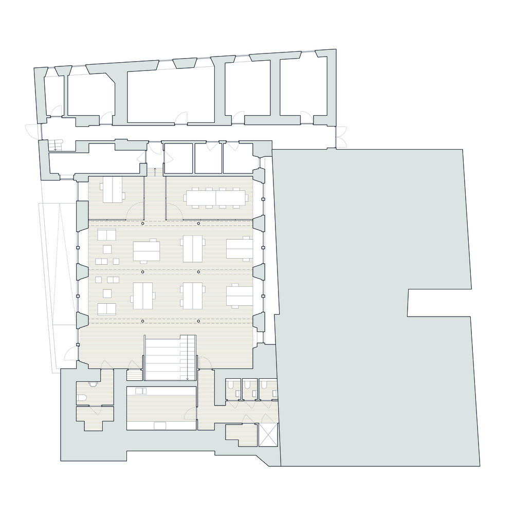 Architekti nechali prostor uvnitř kostela rozdělit na několik nových úrovní. Jednotlivé místnosti navíc oddělili skleněnými příčkami v dřevěných nebo kovových rámech. Důležitým aspektem transformace se totiž stala propojenost a transparentnost. V průčelí kostela dokonce došlo k prodloužení spodních hrotitých oken tak, aby bylo do budovy z ulice dobře vidět. Všechny okenní otvory navíc dostaly nové dvojité zasklení, aby pomohly ke snížení tepelných ztrát. „Spolu s rozsáhlým využitím dřeva v projektu došlo k významnému zlepšení stávající budovy kostela z hlediska jejího vlivu na životní prostředí. To zahrnovalo i instalaci izolace v podkroví. Původní vytápění bylo nahrazeno účinným systémem a v celém kostele bylo instalováno nízkoenergetické LED osvětlení,“ dodávají architekti.