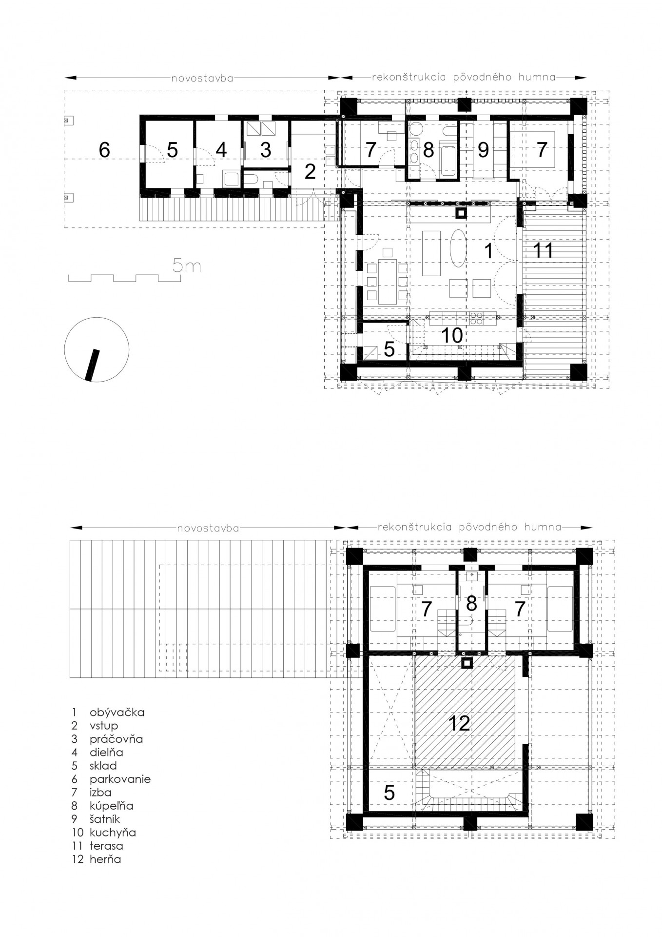 Starý hospodářský objekt, tzv. humno, které dříve sloužilo jako místo pro mlácení obilí, prošel nevšední přestavbou na rodinný dům. Slovenská architektka Eliška Turanská vsadila na zachování původního stavení, do kterého implementovala novostavbu určenou k bydlení. Pro projekt je typický respekt k původní architektuře, využití přírodních a recyklovaných materiálů, a přitom zajištění úrovně bydlení podle dnešních standardů.