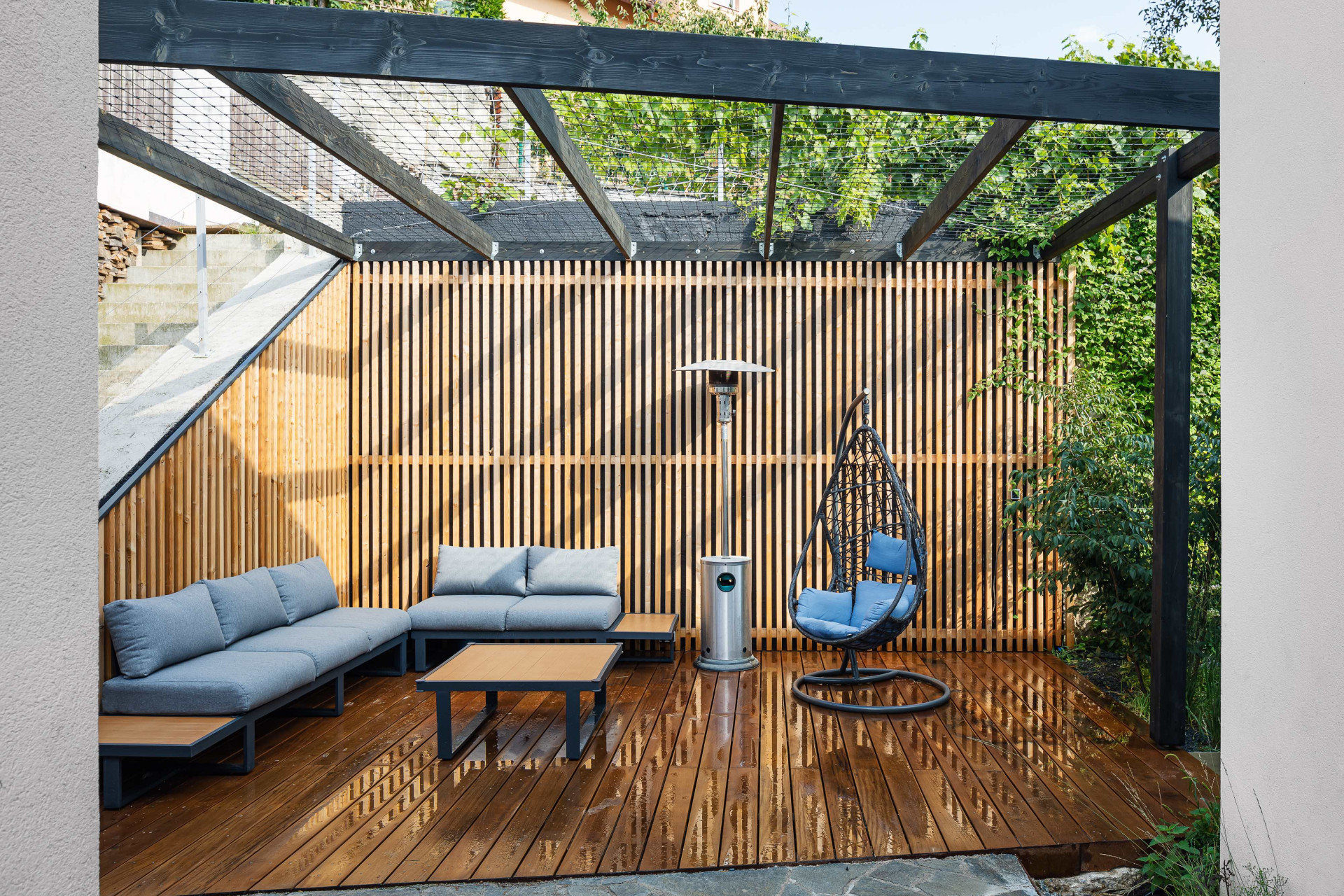 „Dům je navržen jako udržitelný v hodnotách hranice pasivního domu, nejen díky zateplení, vytápění a okenním prvkům, ale taky rekuperací, využití dešťové vody pro zálivku zahrady a splachování WC v domě. K udržitelnosti taktéž přispívají veškeré ozeleněné ploché střechy,“ dodává architektka na závěr.