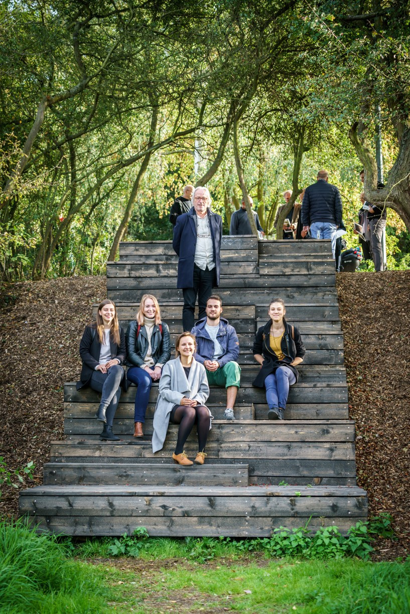 Nový mobiliář na slavnostní vernisáži 26. září 2018 osobně vyzkoušeli místostarosta Městské části Praha 6 Martin Polách a radní Roman Mejstřík, jenž má na starosti životní prostředí. Za Fakultu architektury ČVUT promluvil její děkan Ladislav Lábus a po lavici se prošel rovněž proděkan pro vnější vztahy Jan Jakub Tesař. Jedná se již o druhý projekt spolupráce FA ČVUT a MČ Praha 6, jako první se loni v létě podařilo zrealizovat dřevěný průchod v parku Indiry Gándhíové v Dejvicích.