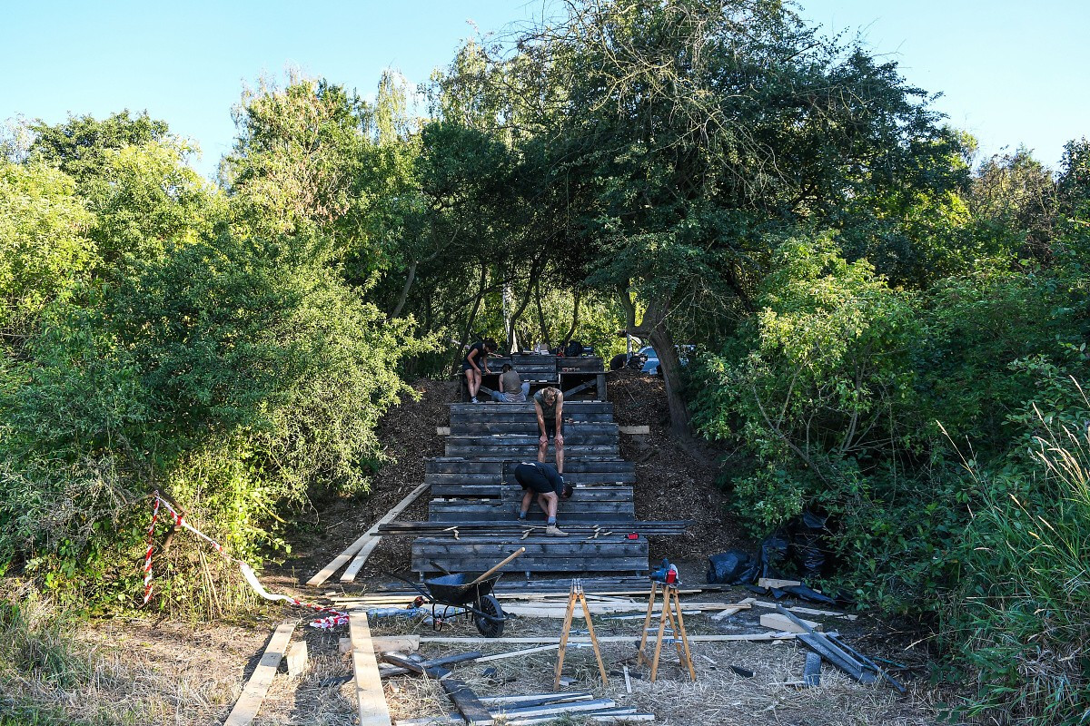 Studenti FA ČVUT navrhli a postavili dřevěnou tribunu na břehu pražského Džbánu
