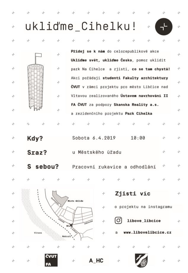 Studenti ateliéru Hlaváček – Čeněk Fakulty architektury ČVUT se o víkendu připojí k celorepublikové akci Ukliďme svět, ukliďme Česko. Úklidem parku Cihelka zahájí projekt, který dovedou až k realizaci vlastníma rukama, do června zde pro obyvatele Libčic postaví vyhlídkovou věž. Projekt je realizován za podpory Skanska Reality a.s. a rezidenčního projektu Park Cihelka.
