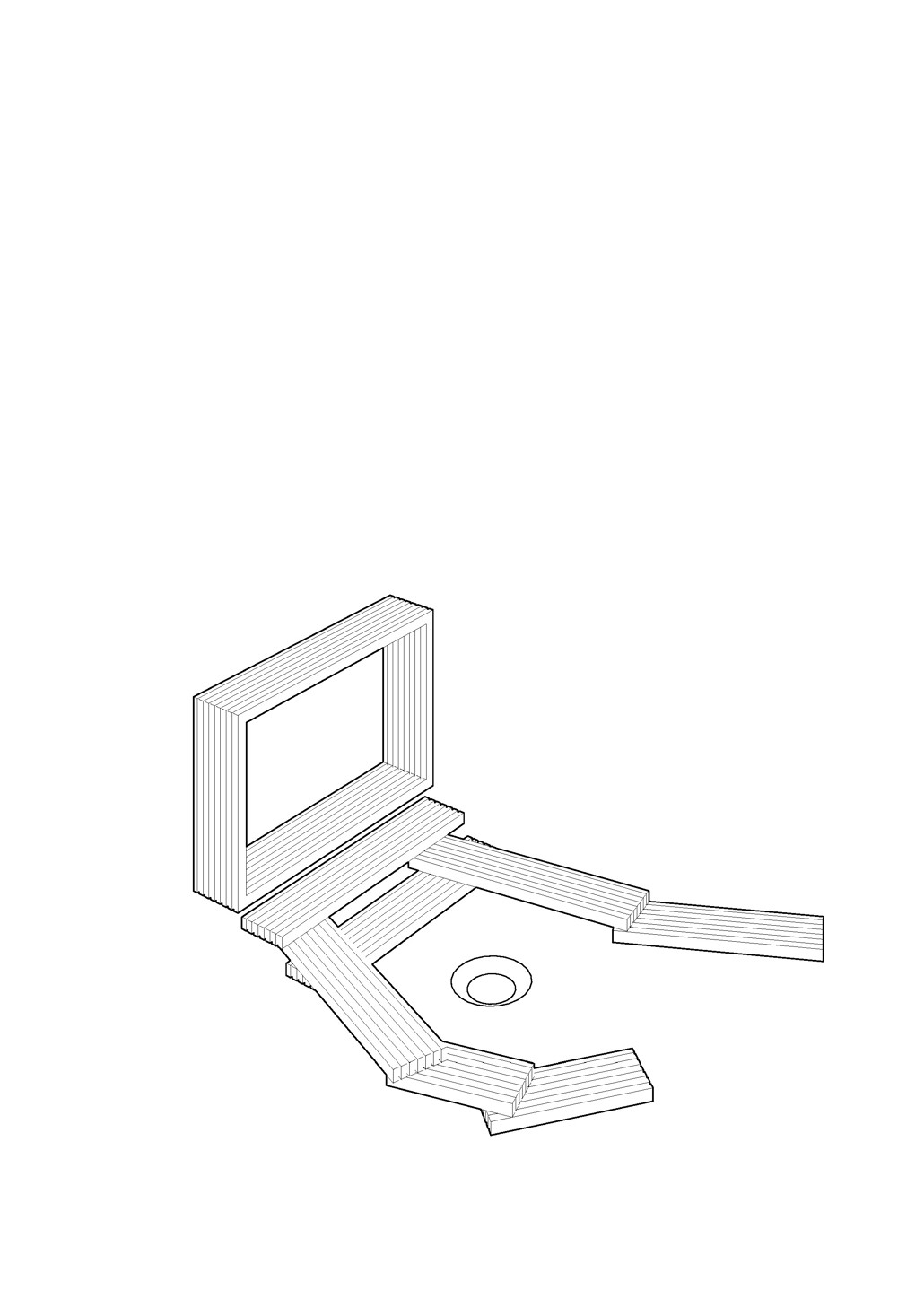 Jeden objekt, socha poutající pozornost. Konzola umístěná kolmo na terasy upozorňuje na výhled na Libčice a protější břeh Vltavy, kam i směřuje. Z dálky jeden objekt v prostoru, který zblízka poodhaluje svou konstrukci a stává se srozumitelnějším.