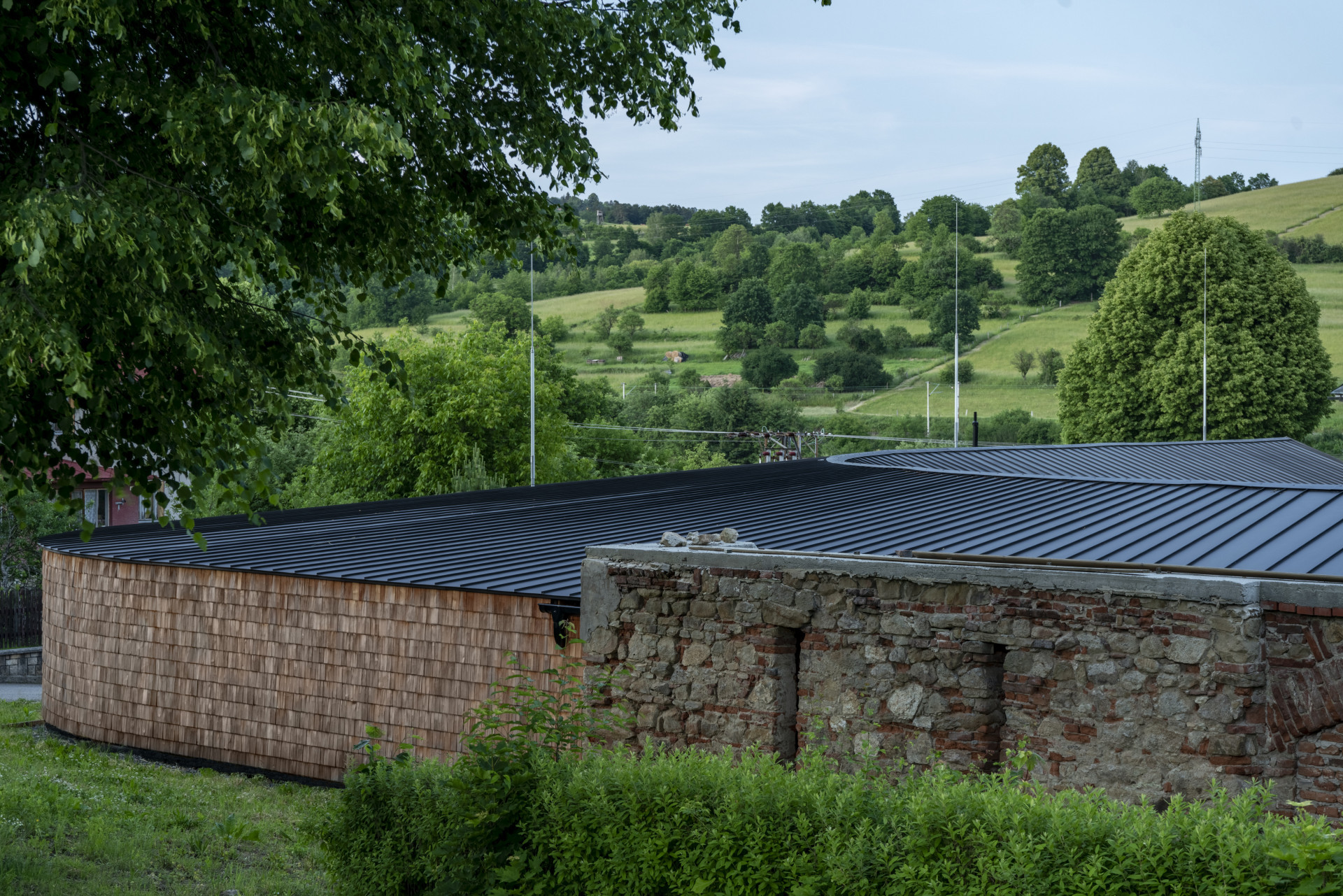 K novostavbě jsme přistupovali jako ke svébytné moderní stavbě zasazené do kontextu. Fara bude rekonstruovaná s přihlédnutím k její historické hodnotě, ačkoliv není památkově chráněná. Místu poskytuje určitou stopu dávné minulosti vzhledem k tomu, jaké materiály se zachovaly a jak je konstrukčně navržená. Je to jedna z mála vzpomínek na místní lidovou architekturu.