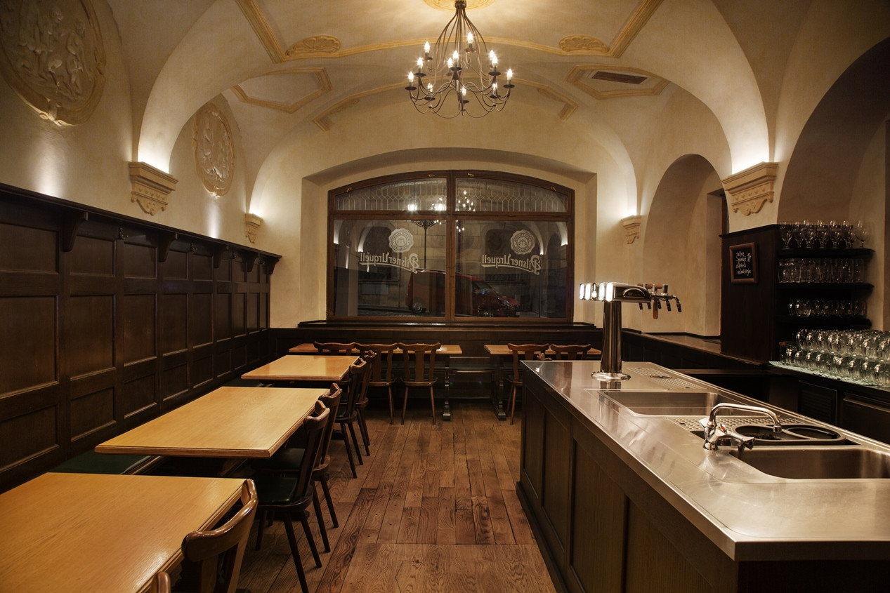 Proslulý podnik s bohatou historií U Glaubiců na Malostranském náměstí v historickém centru Prahy prošel v posledních letech celkovou revitalizací rozdělenou do dvou etap. Architekti David Neuhäusl a Matěj Hunal se ve svém návrhu snažili zachovat původní kvality objektu s gotickými základy, očistit prostor od nevkusných řešení a nashromážděného balastu a citlivě jej doplnit o nové prvky. Restauraci sjednotila nová výmalba, mobiliář, osvětlení i informační systém. Ve druhé fázi projektu proměnili architekti prostor toalet, které svým ryze soudobým pojetím kontrastují se zbytkem restaurace. Vzhledem k památkové hodnotě celého objektu konzultovali architekti projekt s památkáři a restaurátory.