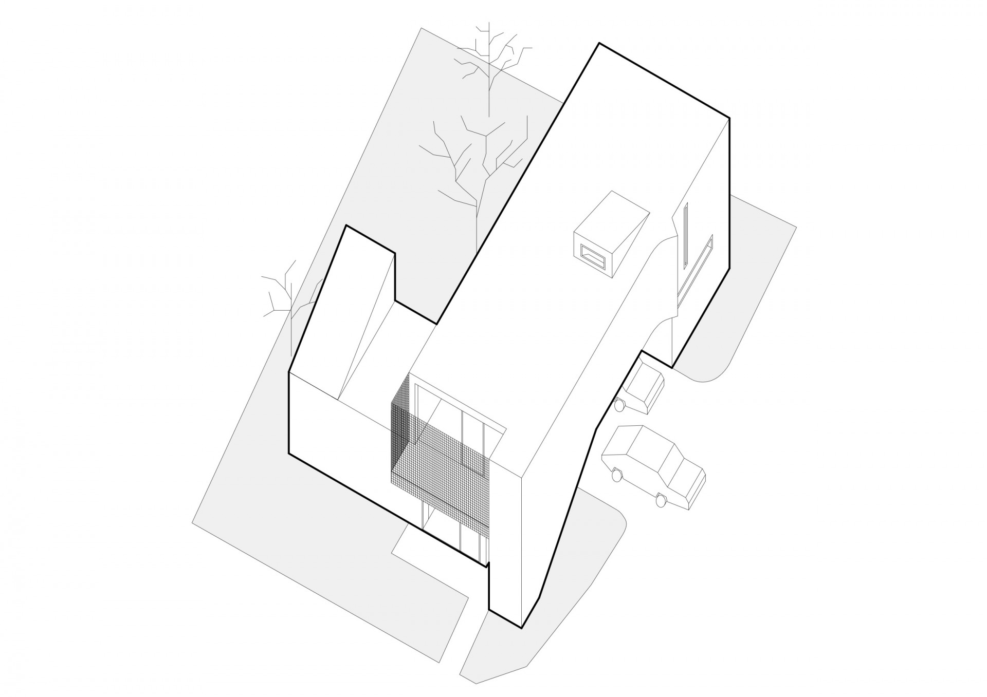 Ateliérový dům v Ratiboři, axonometrie 2 NP, studio OBJEKTOR