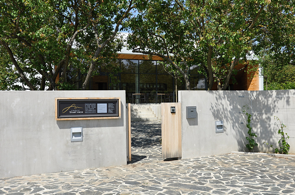 Na krásném pozemku s meruňkovým sadem v jihomoravském městě Hustopeče vzniklo před pár lety nové vinařství Starý Vrch - pojmenované podle kopce, na jehož úpatí se nachází. Areál vinařství v sobě kombinuje veškeré prostory pro zrání a následné zpracování vína. Výrobní prostory doplňuje prodejna vín s degustační místností navazující na částečně krytou venkovní terasu s výhledem do zahrady.