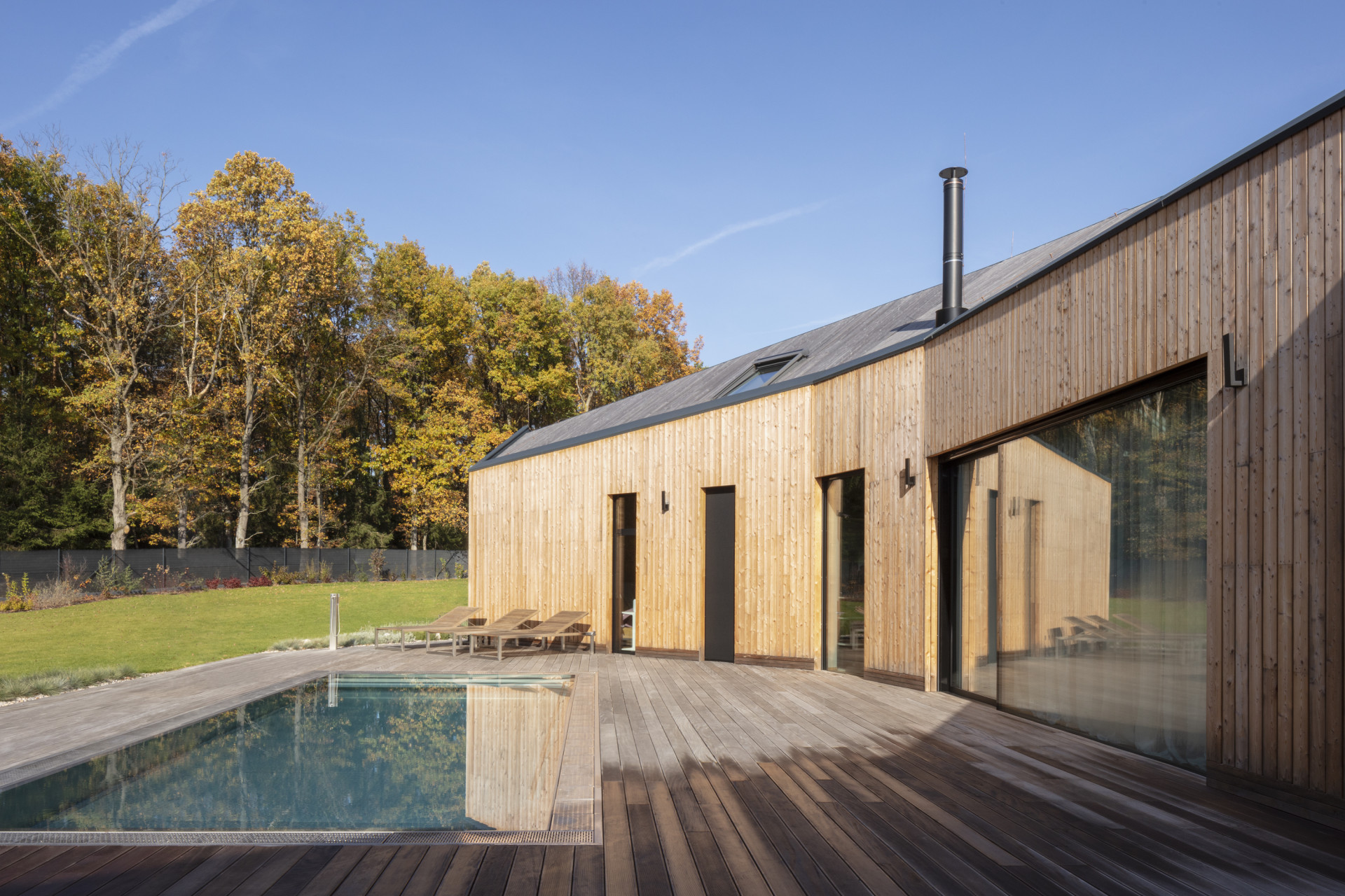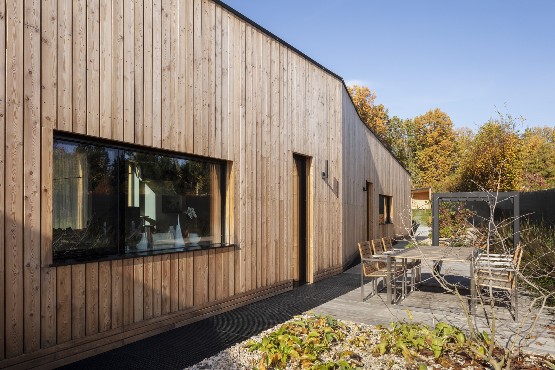 Rodinný dům na Pardubicku charakterizuje rozvětvený půdorys a dřevěný obklad. Na prostoru se nešetřilo – zastavěná plocha je 200 metrů čtverečních. Podobně rozlehlé struktury ale mají v místě svou tradici, obraz obcí totiž původně utvářela právě velká stavení.