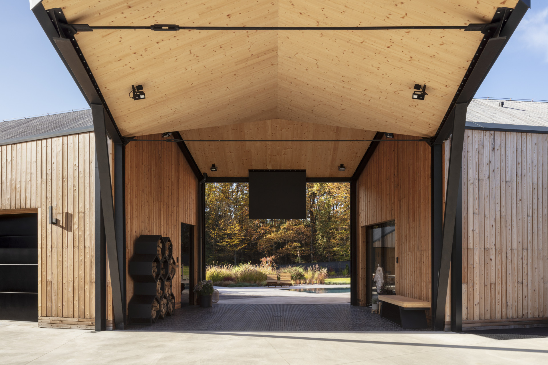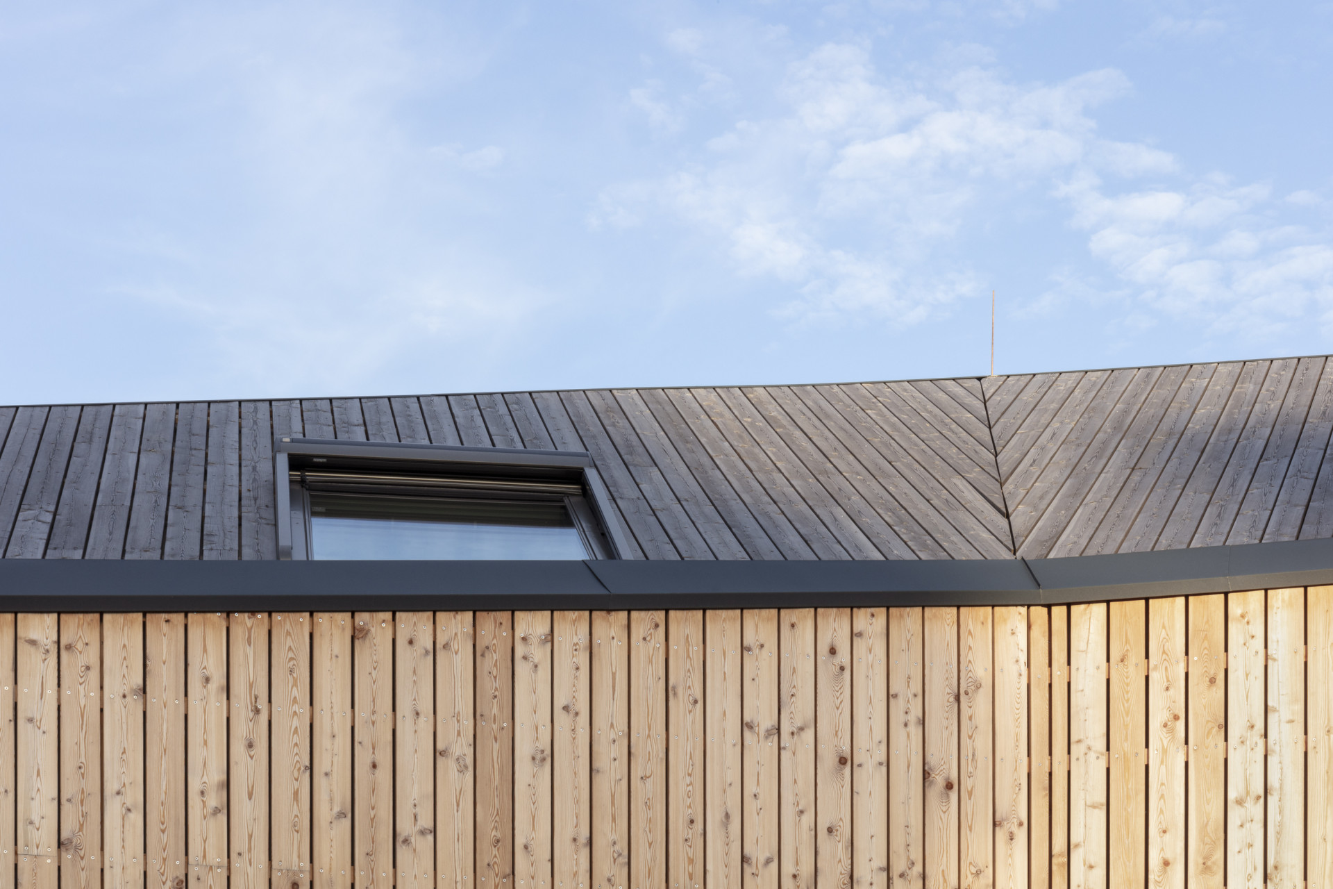 Aby stavba nepůsobila příliš mohutně, rozkolísali architekti výšku hřebene střechy, její sklon však zůstává všude přibližně stejný. Dům tak ve výsledku dostal neobvyklou siluetu. Zároveň je tu patrná inspirace původními stavbami, pro které jsou charakteristické sedlové střechy s minimálním přesahem.