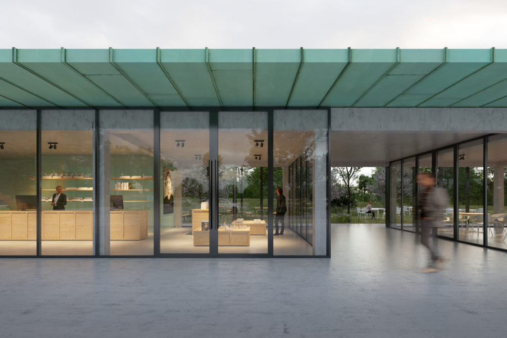 V objektu se budou nacházet nové výstavní místnosti s jednoduchým mobiliářem. Střešní plášť bude z měděné krytiny, který dostane zoxidovanou zelenou patinu. „Tento materiál akcentuje významnou veřejnou stavbu podobně jako kostely, věže budovy pošty nebo městského úřadu, divadla a podobně,“ vysvětluje architektka.