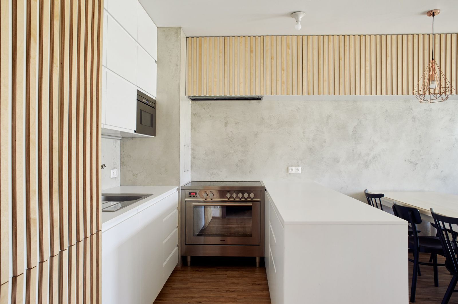 Ti architekti využili latě pro úpravu developerského bytu