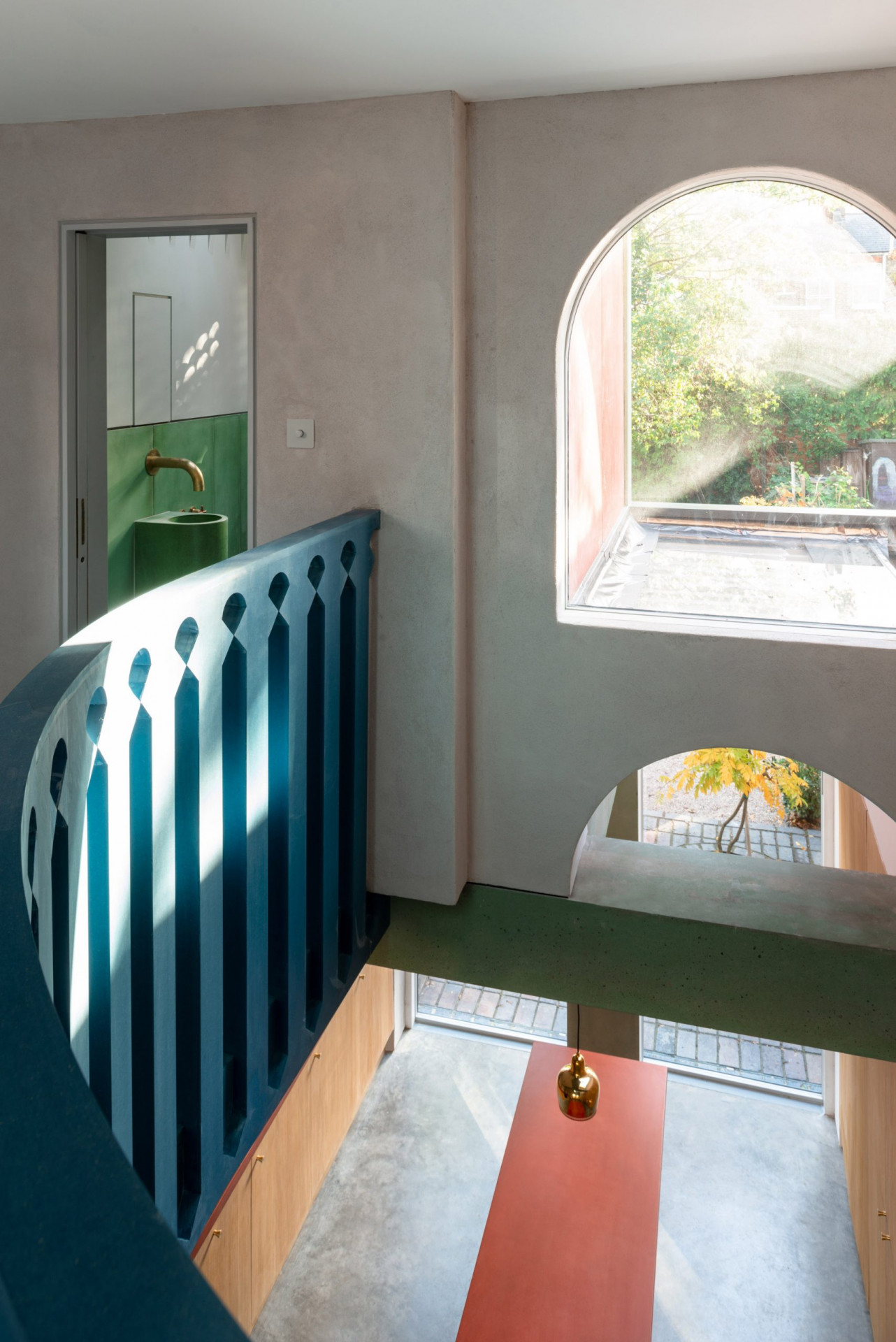 Při návrhu rekonstrukce řadového domu v Londýně se studio Ben Allen rozhodlo otestovat možnosti odlévaného pigmentového betonu. Inspiraci k tomuto kroku čerpali architekti z okolní viktoriánské architektury, která je právě tak bohatě vzorovaná jako nové betonové zdi a další dekorativní detaily zrekonstruovaného domu.