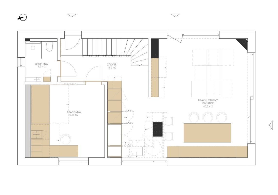 Architektky své tíhnutí k nadčasovosti promítly rovněž do úrovně prostorového uspořádání. Jednotlivé prostory od sebe neoddělují pouze dveře, ale také šikovně rozmístěné příčky. Výsledkem je praktické a projasněné bydlení, které ale nepozbývá na útulnosti. „Je nám blízký tzv. soft minimalismus – tedy čisté linie a přírodní materiály, ale v měkkém, přívětivém pojetí,“ shrnuje Kateřina Horych. Na realizaci Atel!er v Popůvkách je to vidět.