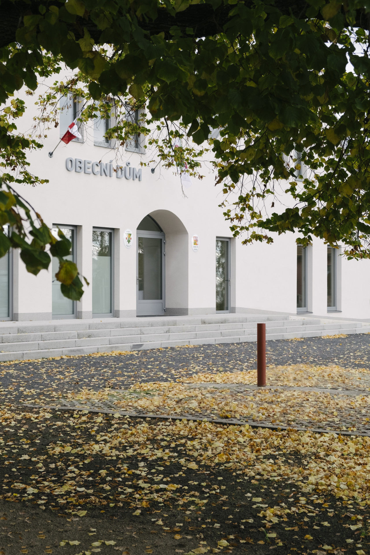 „Naším hlavním cílem bylo napřímit provozní vazby a dát zřetelně najevo, že se jedná o důležitou veřejnou stavbu,“ vysvětlují architekti. Původně byl totiž vchod na úřad neintuitivně schovaný za rohem ve slepé ulici. Nyní jsou vazby obecního domu na jeho okolí logické. Přistupuje se k němu po vyvýšené piazzettě, před kterou stojí stoletá lípa.