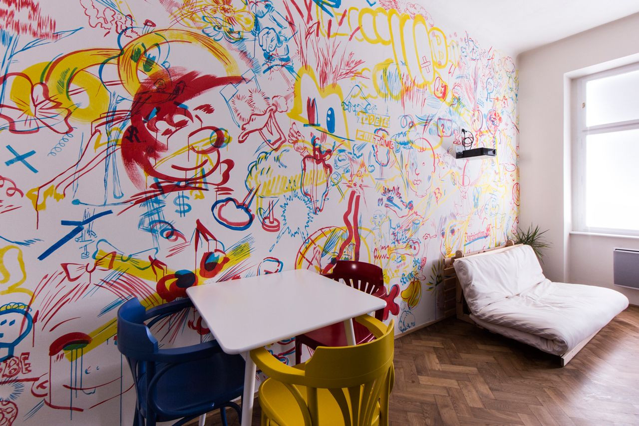 Přízemní byt v secesním holešovickém činžáku byl sice ve velmi špatném stavu, ale zároveň zde zůstalo zachováno mnoho původních ornamentálních prvků. Na půdorysu klasické trojtraktové dispozice s chodbou uprostřed pak architekti Pavel Nový s Vítem Svobodou v rámci rekonstrukce navrhli soudobé bydlení, jež oživuje jak výrazná kuchyňská linka, tak velká nástěnná malba.