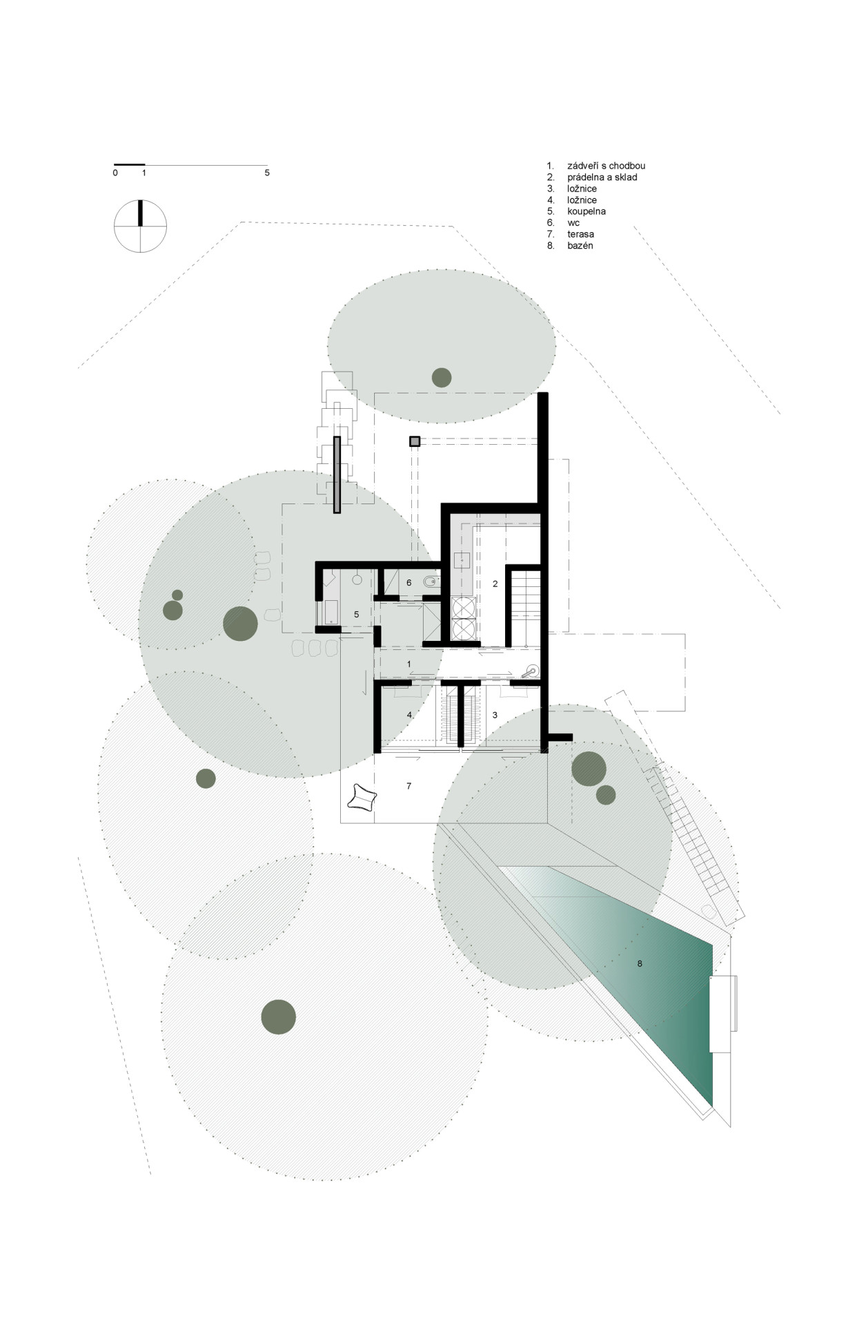 - Užitná plocha: 100 m² dům, 96 m² terasy, 21m² bazén