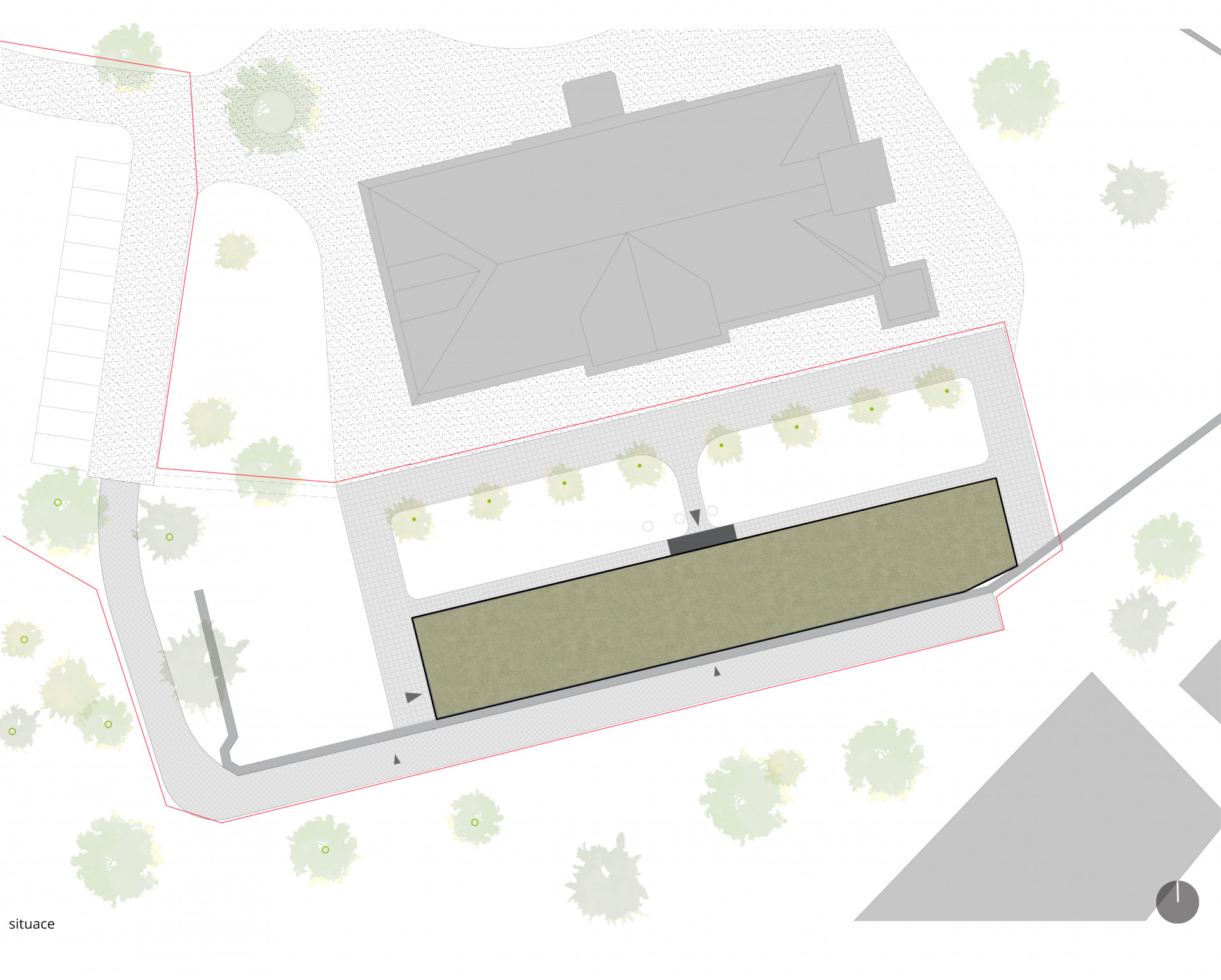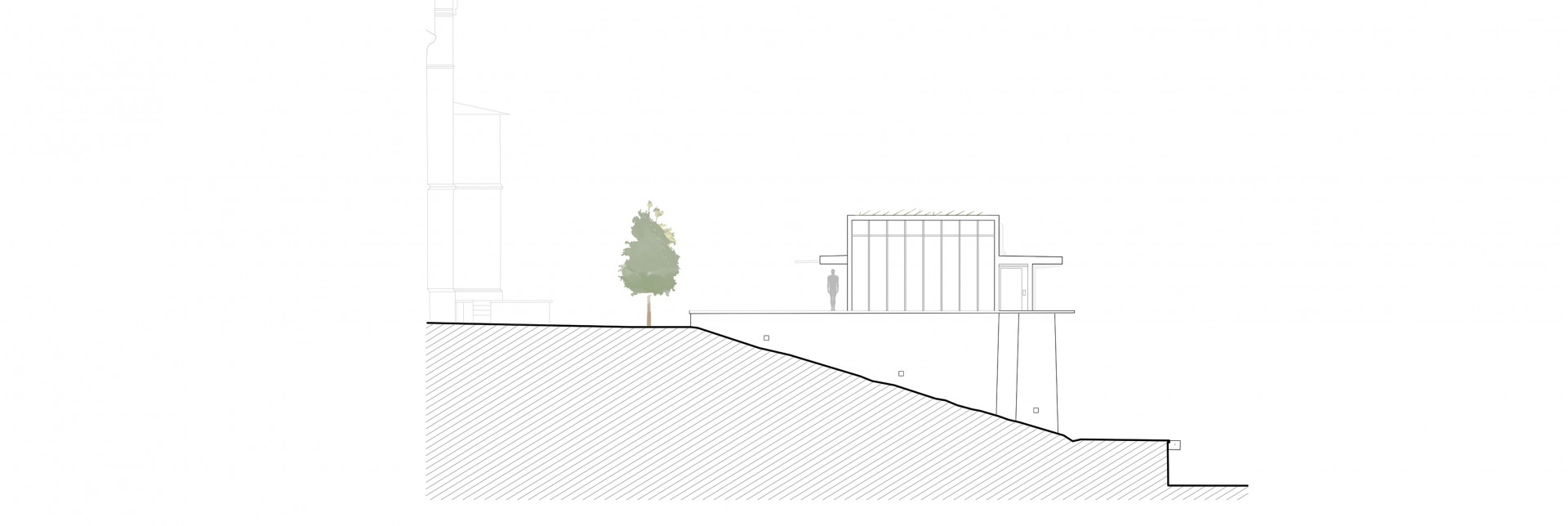 Zadání se tak výrazně změnilo. Místo implementace nových materiálů a technologií do historické budovy řešili architekti otázku architektonického výrazu novostavby umístěné v těsné blízkosti novogotického zámečku. Autoři se rozhodli přiznat funkci budovy také v jejím vnějším vzhledu – přirozeně se přitom nabízela inspirace technickými objekty neogotických zámeckých areálů. Přímo na hradbách před zámečkem tak vznikla podlouhlá budova odkazující na tvarosloví historických skleníků z konce 19. století.