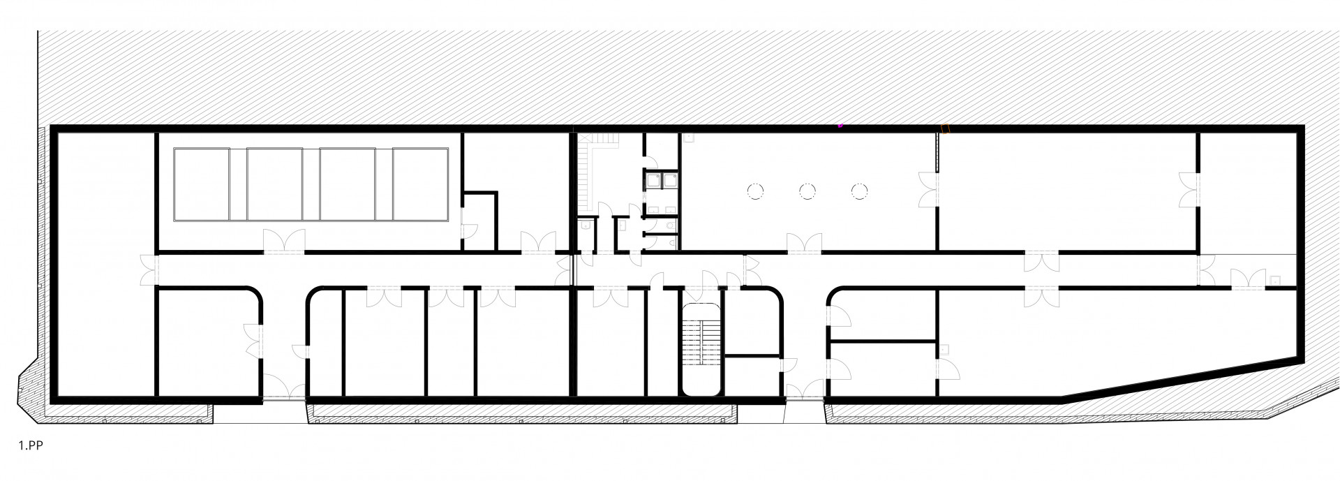 V nadzemní části zvolili autoři bílá dveřní křídla splývající se stěnami. V podzemní části pak naopak černé dveře i zárubně kontrastují s bílým povrchem stěn. V obou případech použili autoři kliky Meclis s kulatými rozetami od českého výrobce M&T. „Klika Meclis je charakteristická svými oblými křivkami a konstrukcí ve tvaru „U". Je vyrobena z nerezové oceli, která vyniká vysokou pevností a velmi dobrými mechanickými vlastnostmi," popisuje Roman Ulich, hlavní designér společnosti M&T.