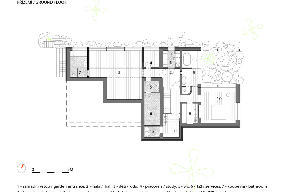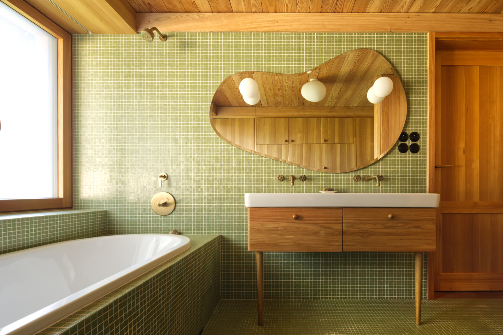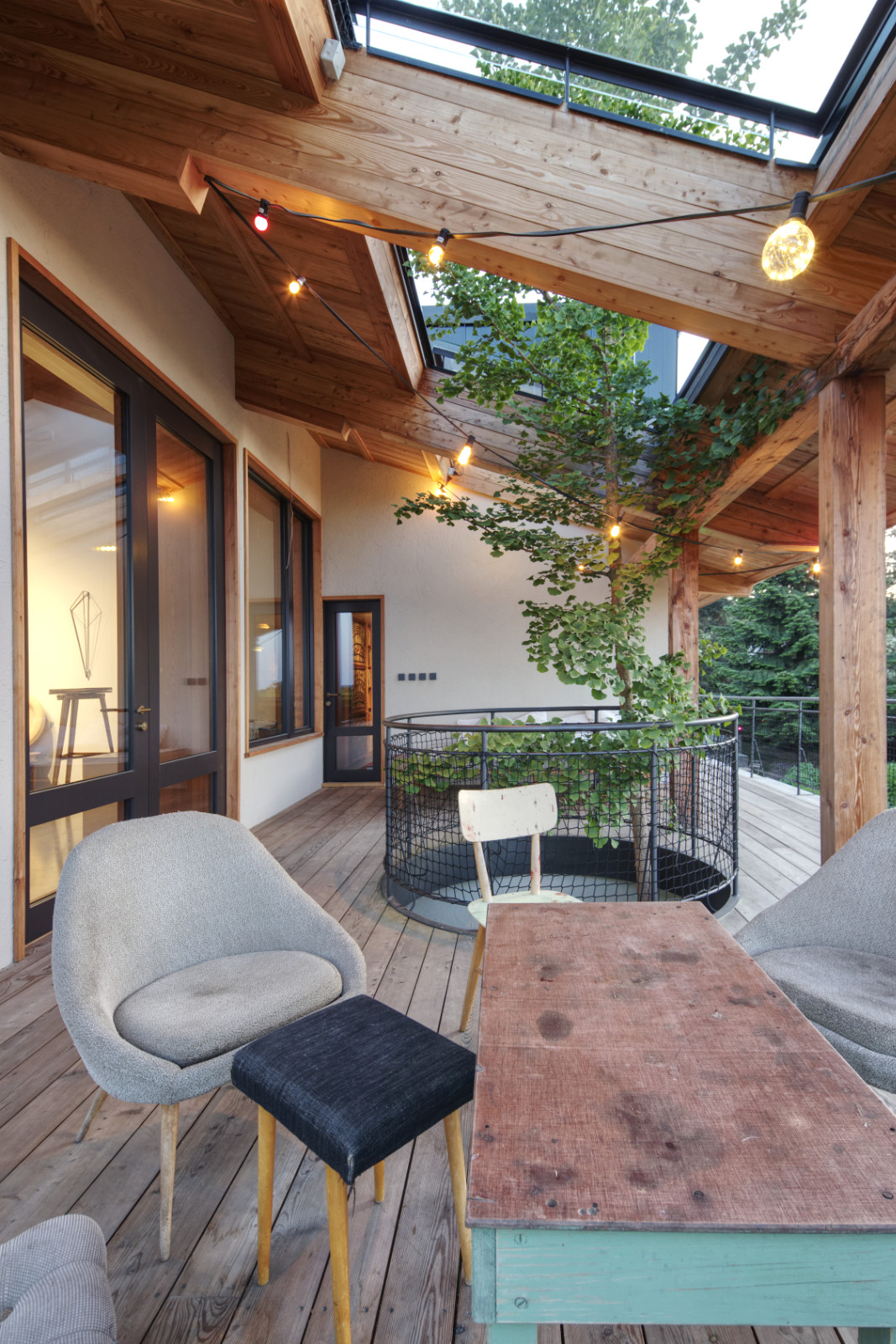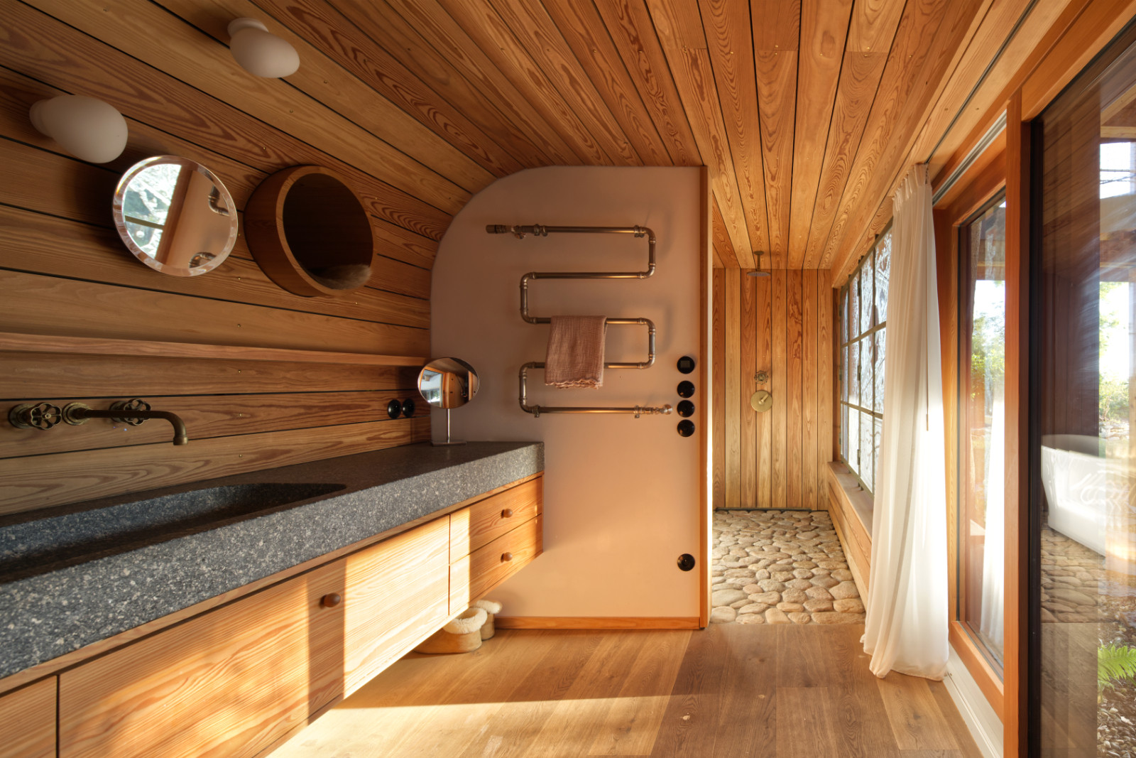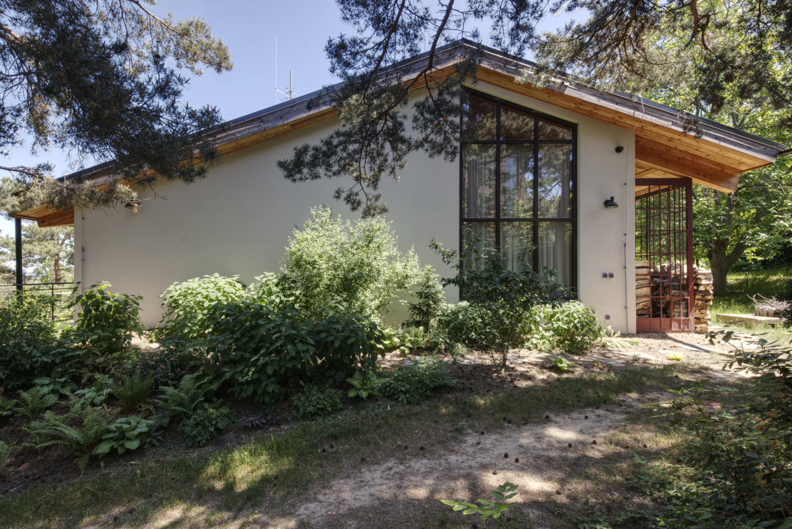 „Vše jsme rafinovaně realizovali, tak aby prvky stavby původní splývaly s novými vstupy,“ vysvětluje architekt David Maštálka, který spolu s Lenkou Křemenovou a dalšími spolupracovníky z ateliéru A1 přestavbu navrhl. Zopakovali některé detaily, například podbití stropu dřevem či členění oken – ačkoliv okna jsou podle současných standardů, s dřevo-hliníkovými rámy a zasklená trojsklem, výraz domu se nezměnil. Na interiéru se podíleli také noví majitelé, najdeme tu jejich svítidla či skleněné skulptury, přišli také třeba s nápadem na dřevěnou koupelnu po vzoru japonských lázní.