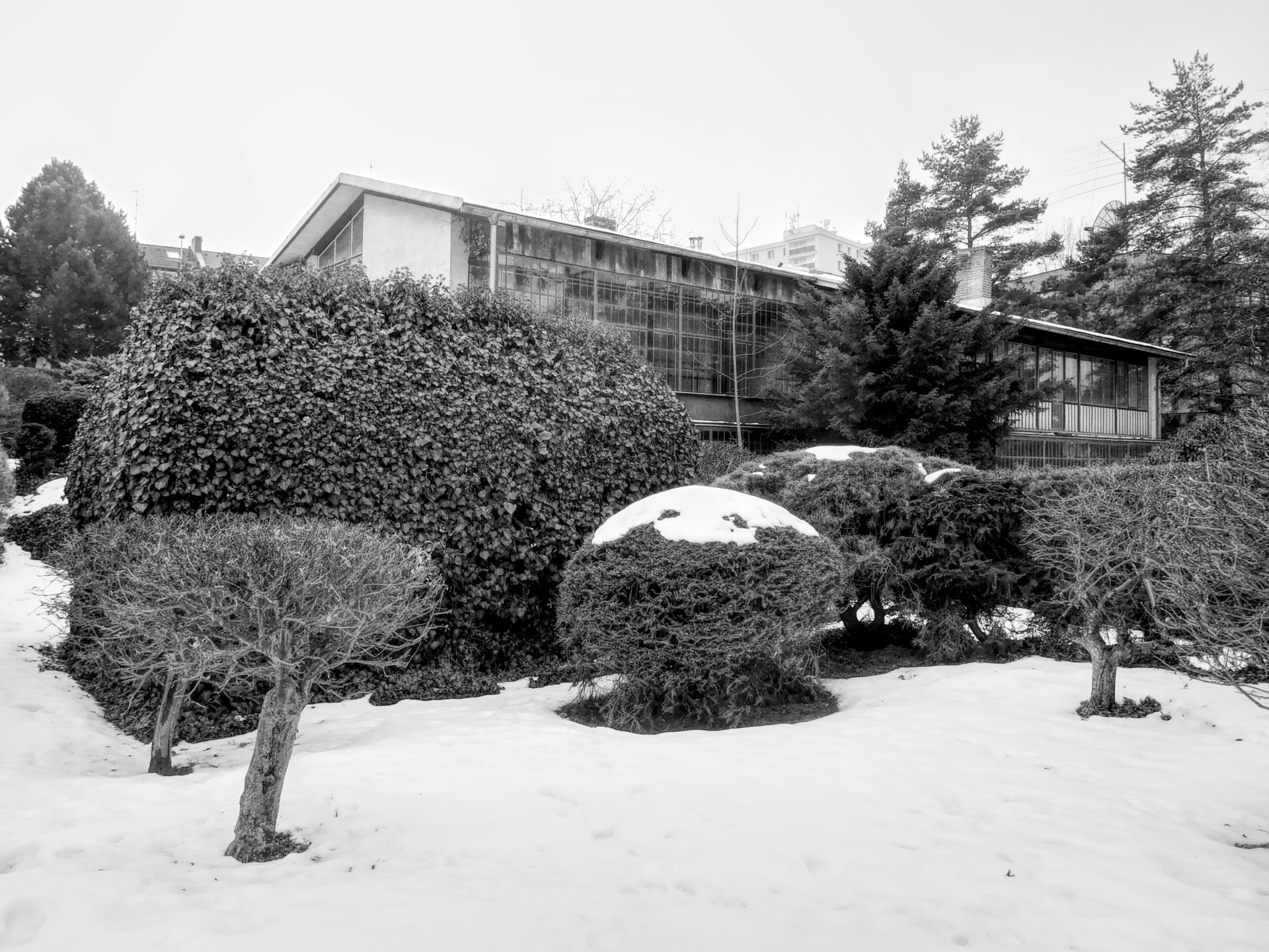 Původně navrhl ateliér roku 1968 architekt Miloslav Matašovský a otiskl do něj svůj rukopis. Jiří Harcuba jej neméně osobitě doplnil o předsazené ocelové závětří, které zároveň sloužilo jako „bariéra proti místním zlodějíčkům.“ Dům tím získal něco asijského, zároveň tu ale byl výhled na komín teplárny Veleslavín jako z obrazu Kamila Lhotáka. K tomu ještě stará zahrada se spletí kosodřevin – prostě nebývale poetický mix.