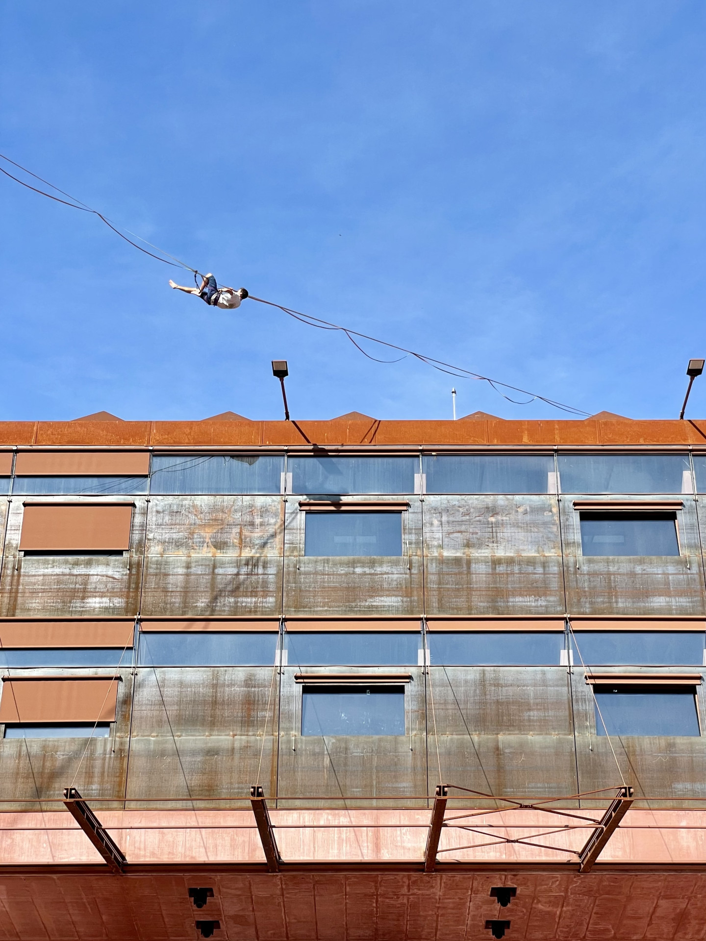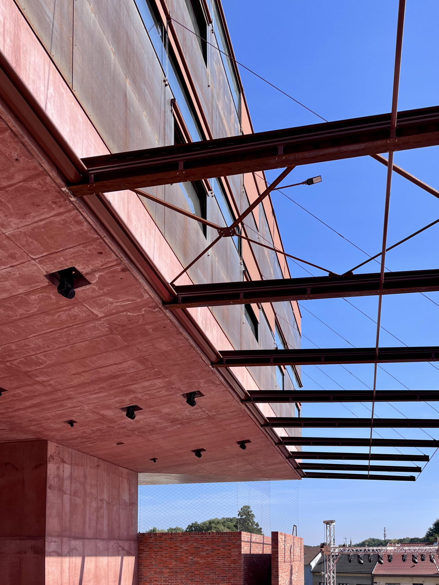 Mezi horní a spodní částí nové budovy se nachází terasa.