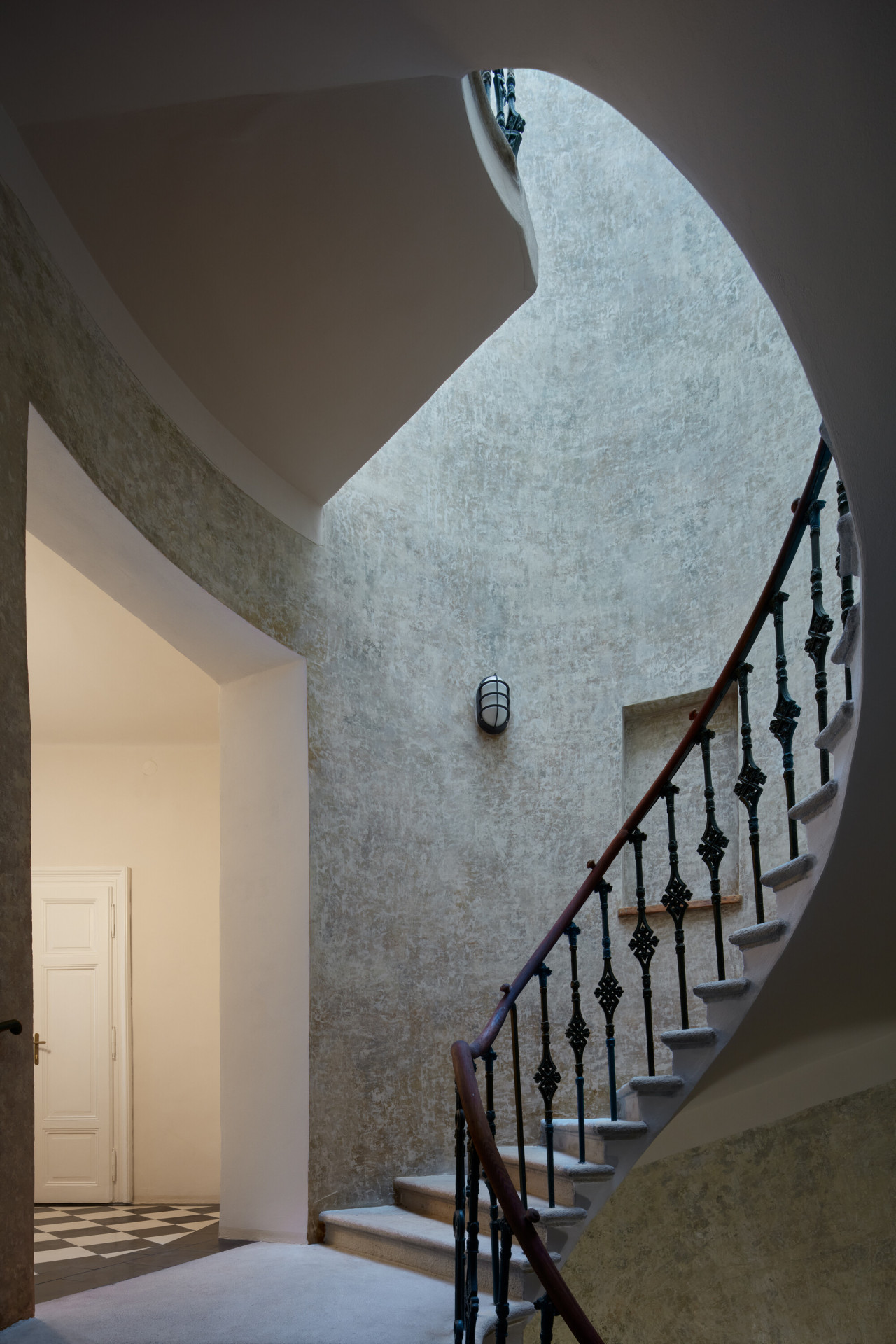 „V druhé polovině dvacátého století dům chátral, jeho záchranu umožnil teprve majitel, který stále působí v zahraničí. Zadáním byla obnova a vrácení funkce činžovního domu, což je ve vylidňující se čtvrti, postižené turistickým průmyslem a krátkodobým ubytováním, skutečným unikátem. Potomci původních majitelů si také přáli důstojnou a kvalitní obnovu rodinného stříbra,“ přibližují situaci architekti David Wittassek a Jiří Řezák z kanceláře QARTA Architektura, kteří stojí za jeho rekonstrukcí.