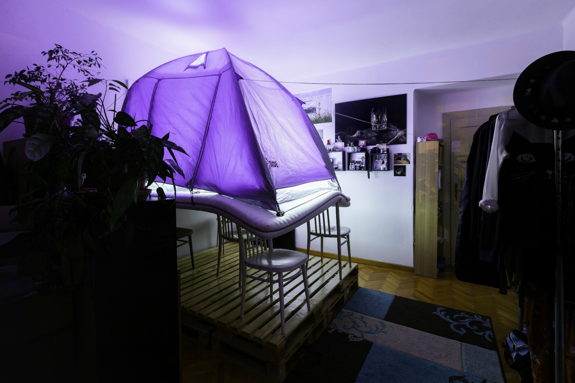 Přesto, že život ve společném studentském bytě dnes přináší jisté strasti, našla trojice studentů cestu k vytvoření společného díla. Celosvětová mimořádná situace změnila jejich cestovatelské plány a sny. Místo nově plánované cesty zrekonstruovali předchozí zážitky, aniž by opustili byt. „Konkrétní zážitky a místa jsme zinscenovali v prostorách našeho bytu a zaznamenali je pomocí fotografií. Jedná se tedy o pokus rekonstrukce zážitků z daného místa a jejich atmosféry,” řekla Lucie Hyšková.