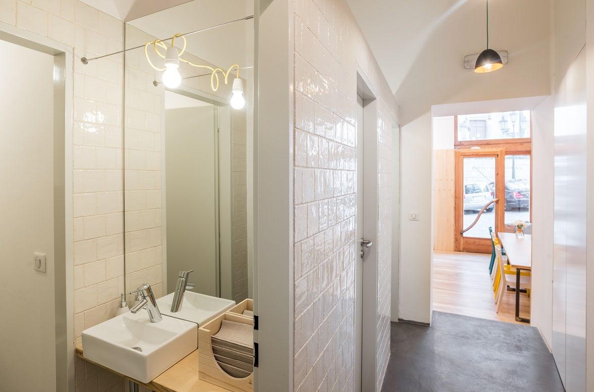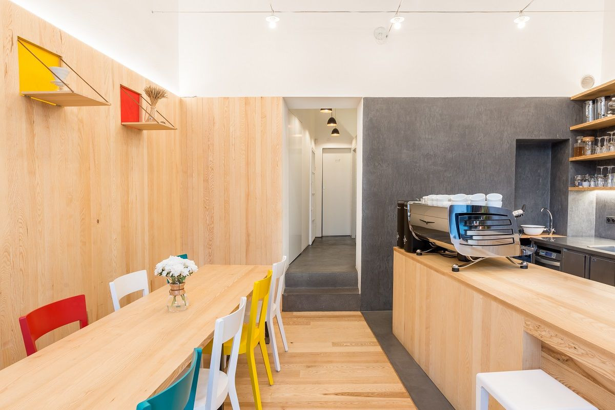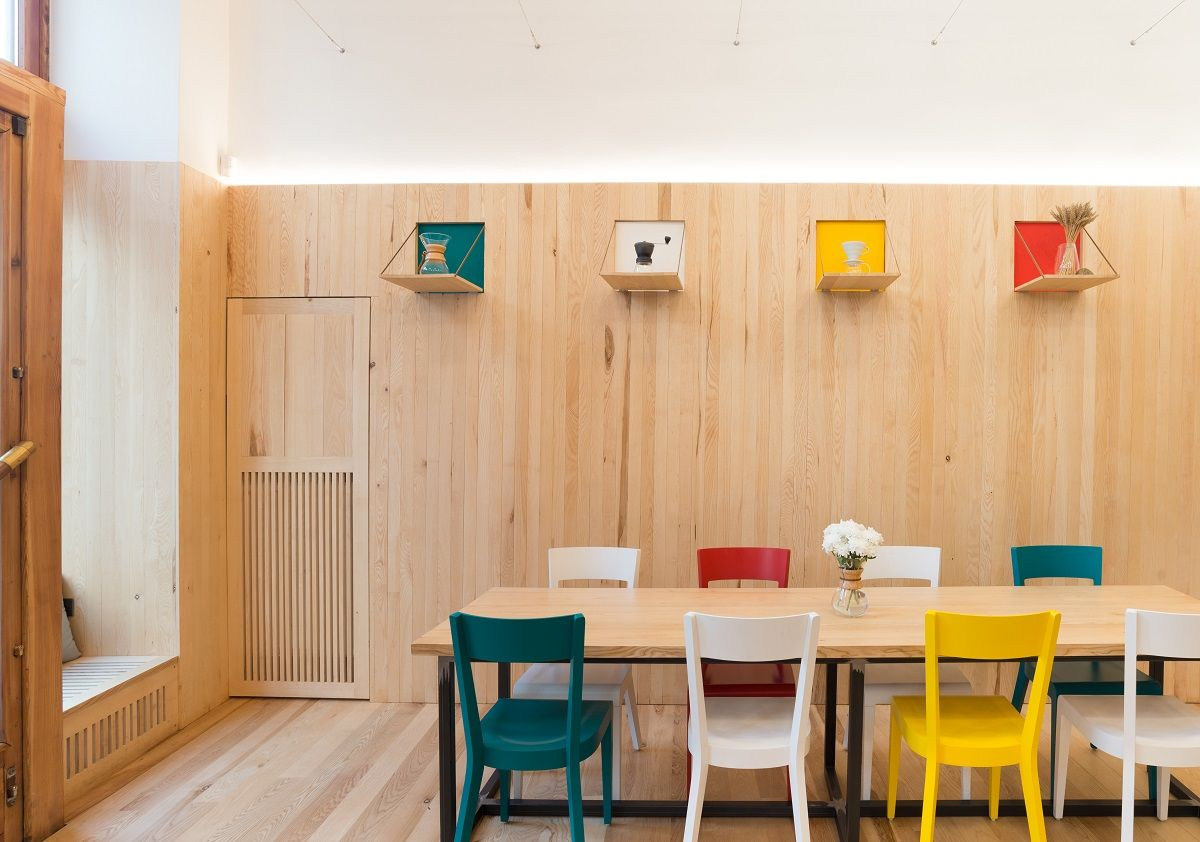 Rekonstrukce památkově chráněného domu v Brně jen dokazuje vzestup kavárenské scény v tomto městě. Domácí studio AEIOU vyřešilo prostor jeho rozdělením na dvě části, které jsou ve vzájemném materiálovém kontrastu. Návštěvnické části vládne dřevo, prostoru pro přípravu a prezentaci naopak stěrky. V interiéru najdeme několik zajímavých detailů, například vyklápěcí police nebo osvětlení navržené přesně na míru Monogram espresso baru.