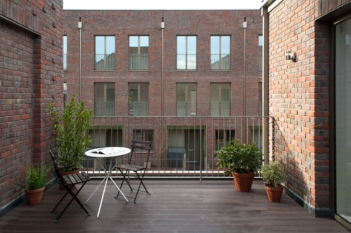 Použití zvenku viditelných, kvalitních cihel bylo pečlivě zváženo. Právě tak i jejich předsunutí na určitých stěnách domů. Rozumné naplánování cyklotras i umístění košů z ulice dodává místu přehlednost a zároveň jakýmsi způsobem kouzlo domova. Uvnitř domů jsou byty dobře naplánovány a dispozice dobře odpovídají požadavkům a potřebám obyvatel v každém ohledu.