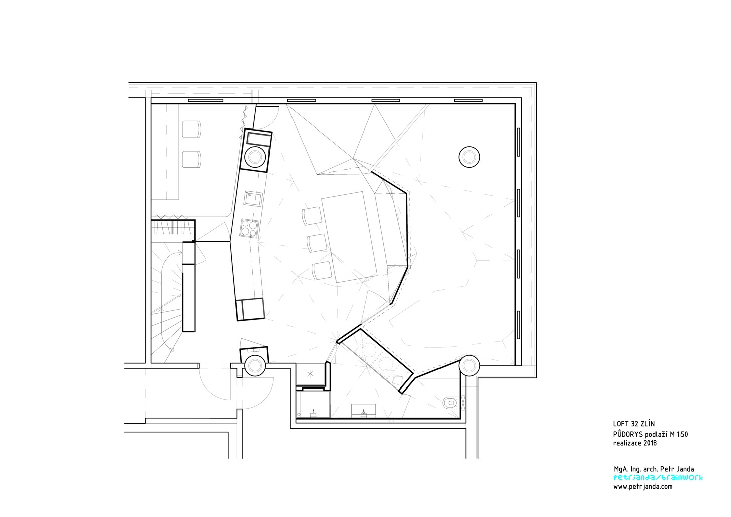 Loft 32 Zlín, půdorys 1np, petrjanda/brainwork