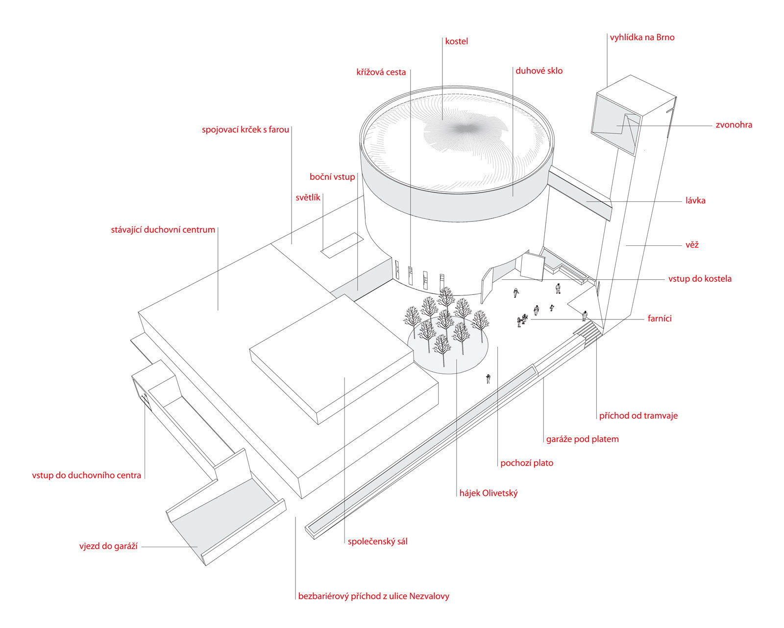 Kostel bl. Restituty Brno - Lesná, schéma