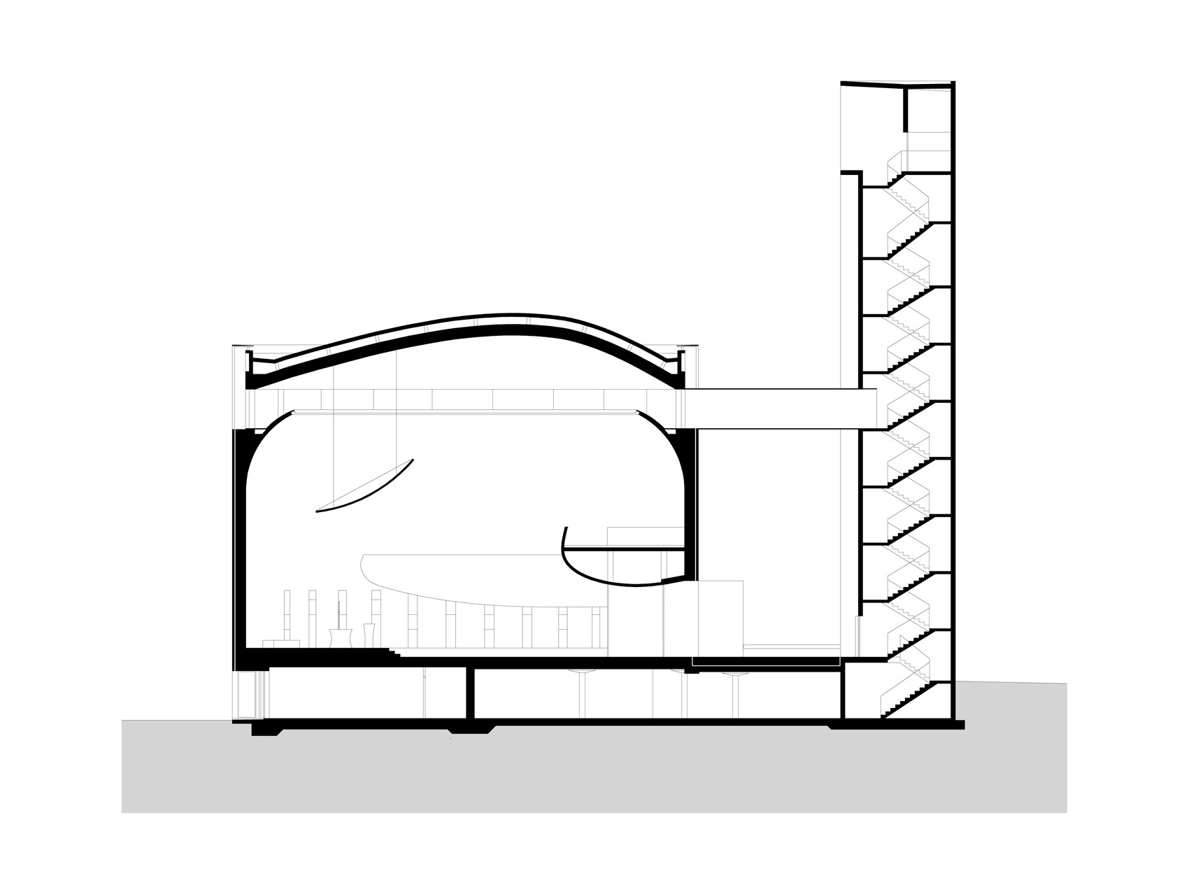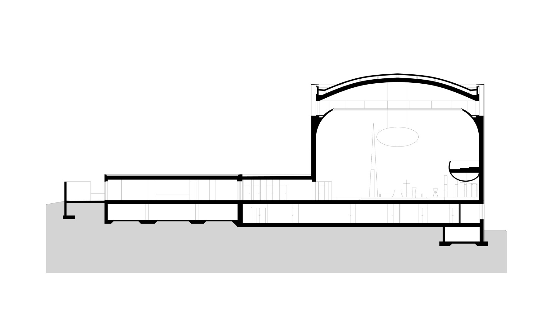 Kostel bl. Restituty Brno - Lesná, podélný řez