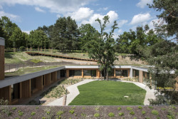 Je zde místo pro deset dětí a osm rodičovských pokojů. Díky práci se svažitým terénem se povedlo zbudovat také komfortní podzemní podlaží, kde jsou šatny a kanceláře.