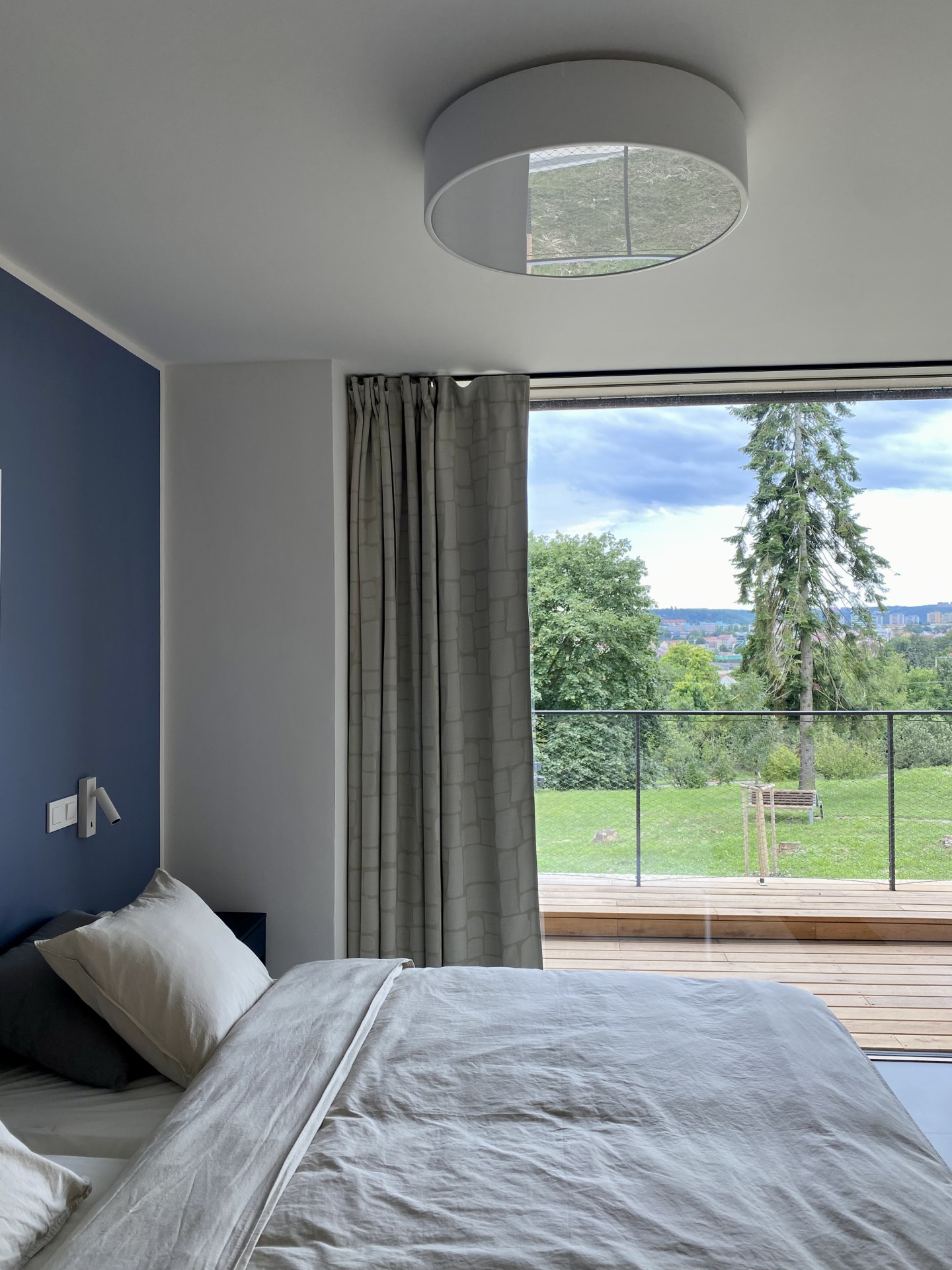 V patře jsou pak komfortní pokoje pro rodiče. Nabízí jim soukromí a oddech od péče – tady mají jistotu, že o dítě je dobře postaráno. „Tím, že dům dobře využívá okolní terén, je z patra rodičů přímý výstup ven, ale i na terasu s panoramatickým výhledem na Brno,“ popisují architekti. Počítá se s tím, že tady rodiny budou trávit jeden až tři týdny, pak se vrátí domů, a pak zase mohou využít hospice.