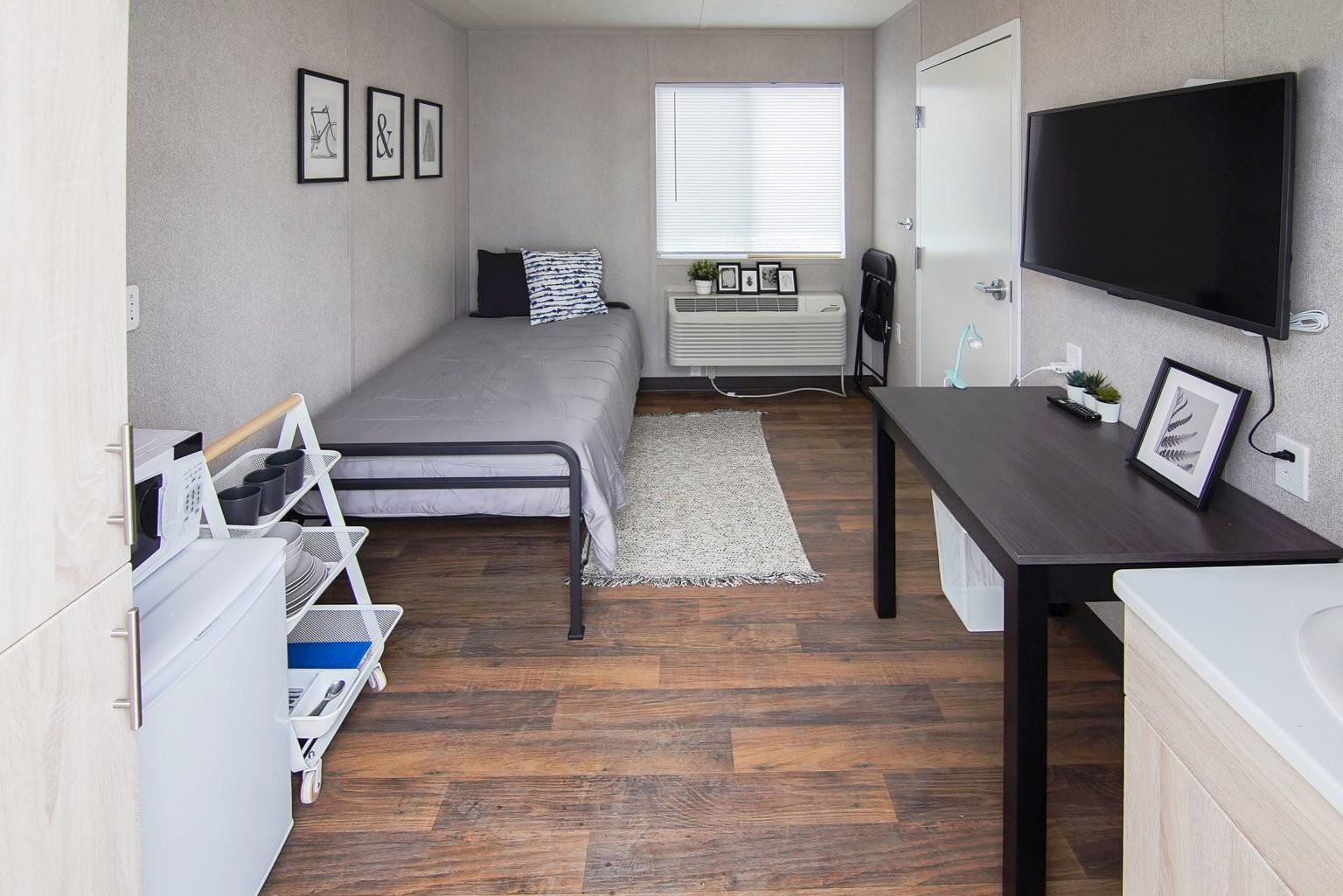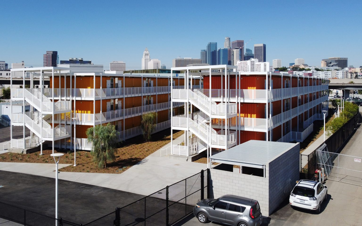 V centru Los Angeles vyrostl letos na jaře soubor bydlení pro lidi bez domova. Realizaci projektu urychlila pandemie Covid-19, během níž přišlo mnoho místních obyvatel o střechu nad hlavou. Pro urychlení výstavby a snížení nákladů využili architekti primárně lodní kontejnery a další prefabrikované jednotky.