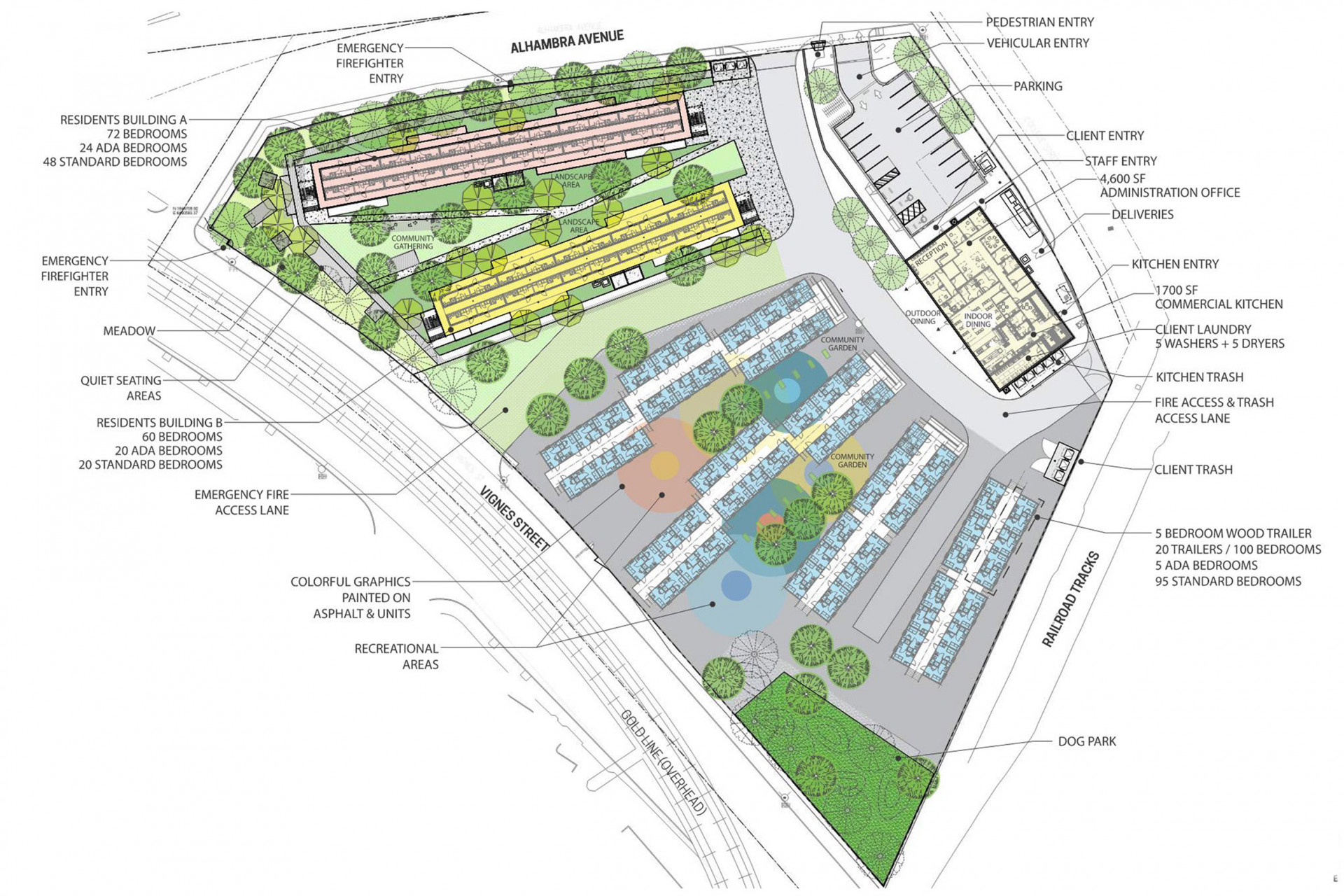 Původní plány na zástavbu pozemku poblíž centra Los Angeles se změnily v roce 2019, kdy se začalo uvažovat o využití plochy parkoviště pro ubytování lidí bez domova. Krize, kterou přinesla pandemie Covid-19, napomohla k přehodnocení přechozího záměru vybudování věznice a místo ní zde postavit bydlení pro stále rostoucí skupinu obyvatel bez domova – aktuálně se v LA s bezdomovectvím potýká asi 60 000 lidí.