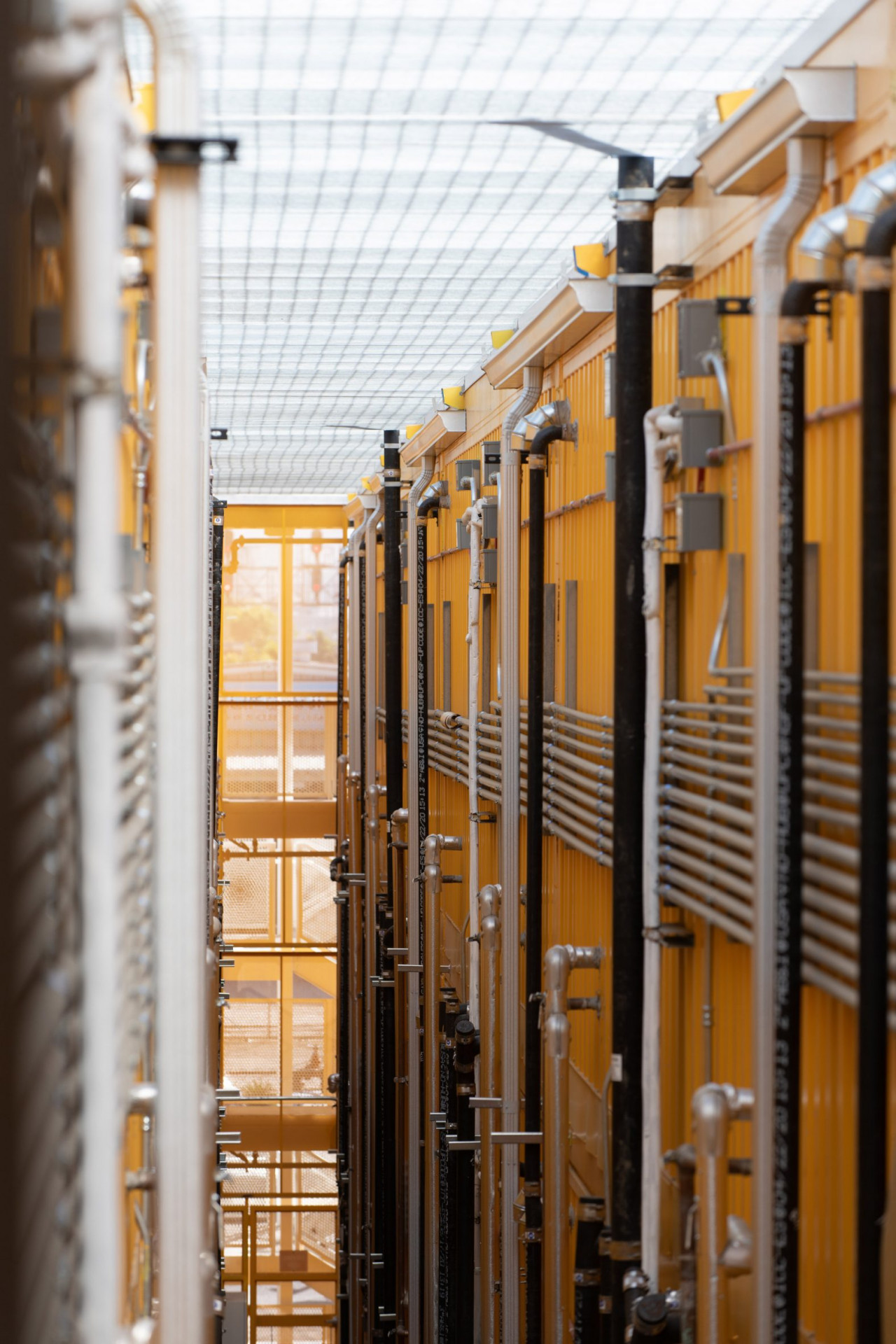 Kontejnery tvoří dvě třípodlažní budovy s bílo-oranžovou fasádou, přičemž jeden kontejner nabízí vždy dva vybavené byty o výměře 12,5 metrů čtverečních. Společně s dalšími jednopodlažními objekty soubor obsahuje celkově 232 bytových jednotek a jeho součástí jsou také společné prostory s komerční kuchyní, jídelnou, kancelářemi a prádelnou. K objektům patří také venkovní prostory, kde se nachází pobytové dvorky, psí park i parkovací místa pro zaměstnance a ubytované.