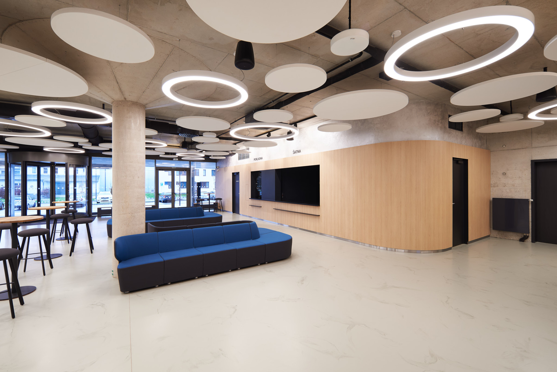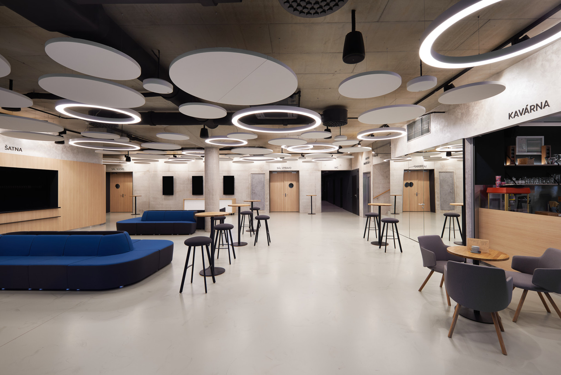 Při výběru vnitřního vybavení se architekti rozhodli spolupracovat mj. s českou firmou LD Seating, která jim zajistila vybavení převážně do foyer budovy. „V sortimentu jsme vybrali, co jsme potřebovali, v odpovídajícím designu a kvalitě. Hledali jsme typově rozličný sedací mobiliář, především do hlavního foyer. Např. modulární sestava nám umožnila vytvořit adekvátní prostorné sezení, které kapacitně obstojí i při plném vytížení kulturního centra. Navíc nebyl problém s certifikací do veřejných prostor a požárními atesty.“ uzavírá Lukáš Svoboda.
