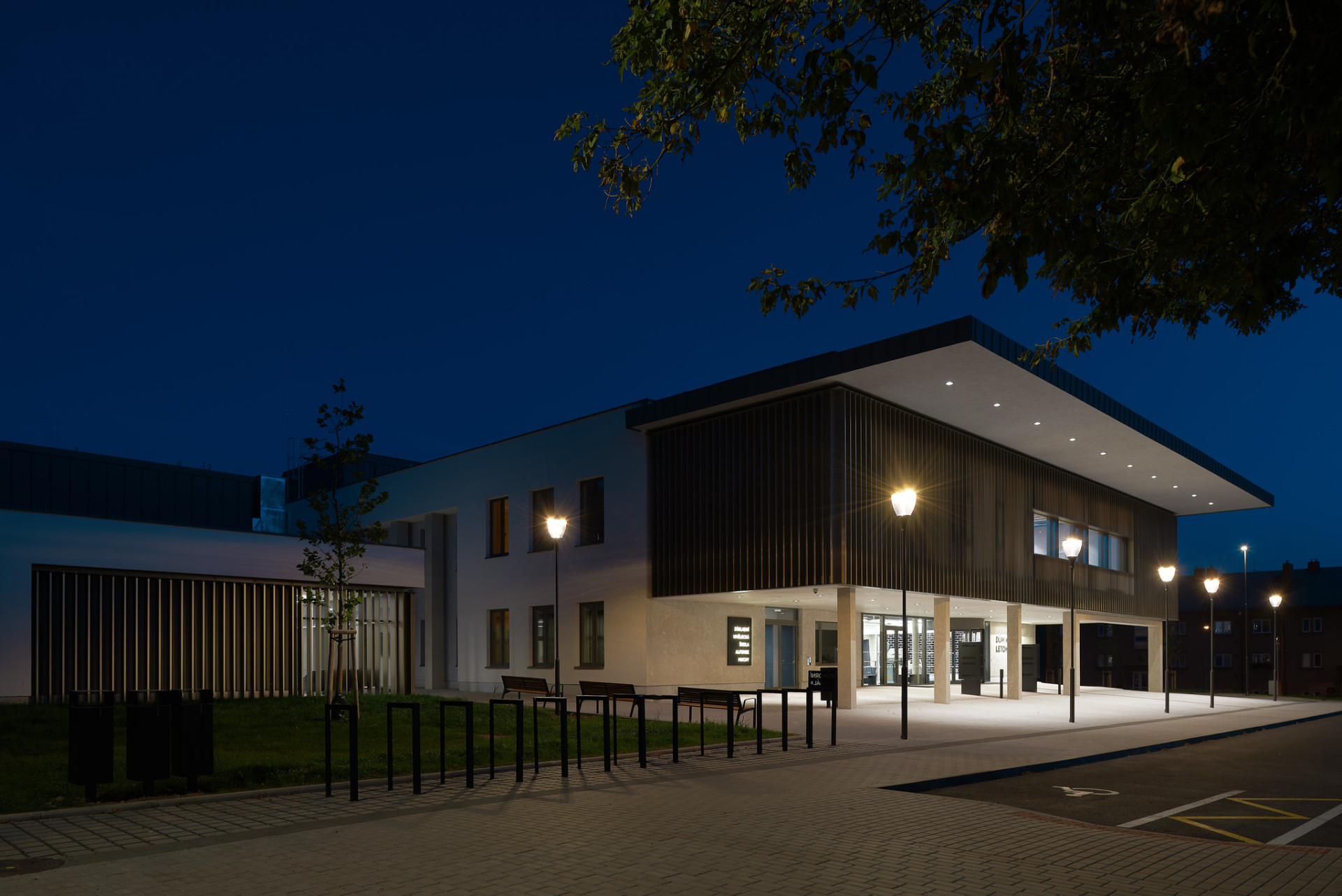 Rekonstrukce kulturního domu doplněná o prostory ZUŠ měla za cíl oběma institucím umožnit vzájemnou podporu a využít nabízející se spolupráci. „Jedním ze základních požadavků, které ale návrh zásadně ovlivnily, bylo doplnění prostorného tanečního sálu a následně také komorního sálu ZUŠ,“ uvádí architekt Lukáš Svoboda ze studia Architekti.in, které je autorem celé rekonstrukce. „Tento přístup si vynucoval radikální zásah do provozu i podoby stávající stavby; na druhou stranu tím umožnil zlepšení řady dalších souvislostí, provozních vazeb i technických řešení.“
