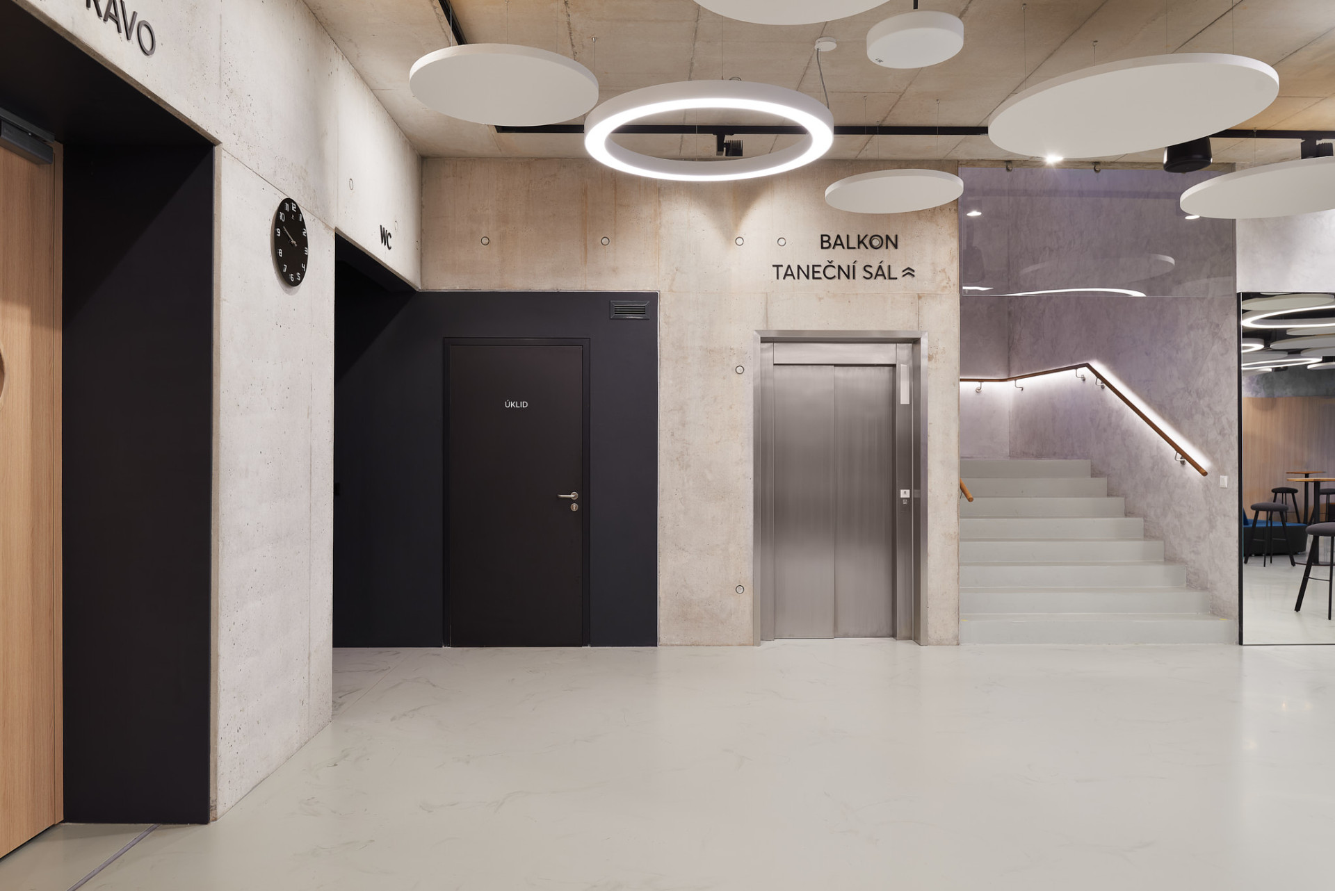 Také foyer potřebovalo větší zásah. „Původní komplikované řešení bylo očištěno od řady dílčích bariér ve formě dveřních clon, stěn, sloupů. Nové otevřené foyer pak logicky a přehledně propojuje všechny základní provozní části budovy,“ vysvětlují architekti ve své autorské zprávě. Foyer tak nyní slouží jako centrální prostor s veškerým návštěvnickým servisem, odkud se také vstupuje do hlavního sálu. Na balkón a do tanečního sálu je pak vstup po schodišti.