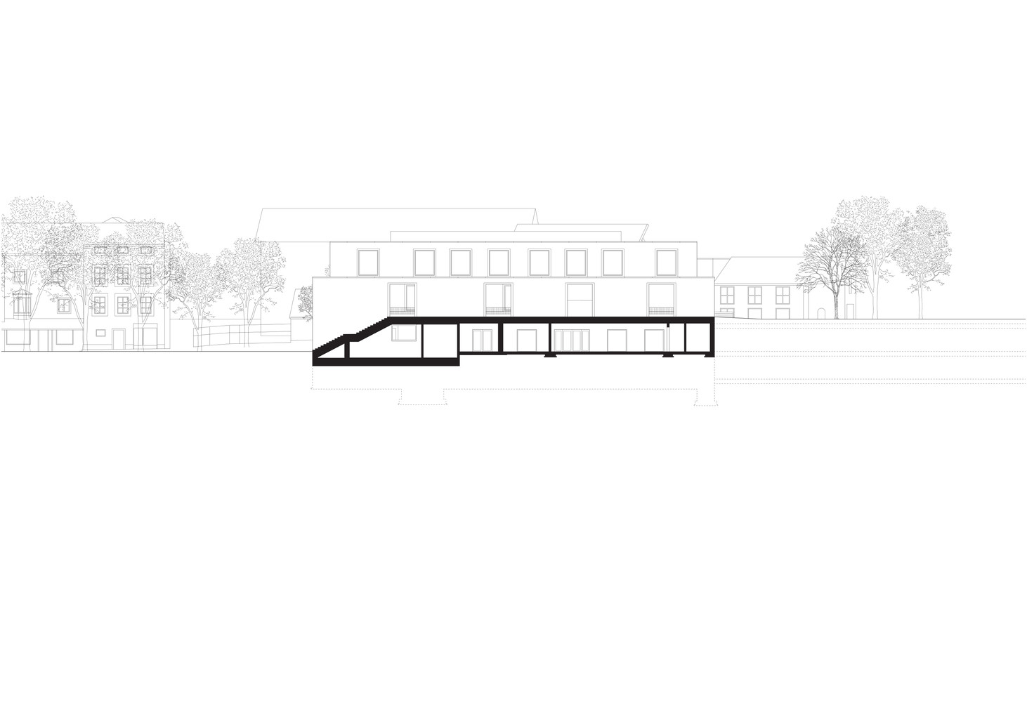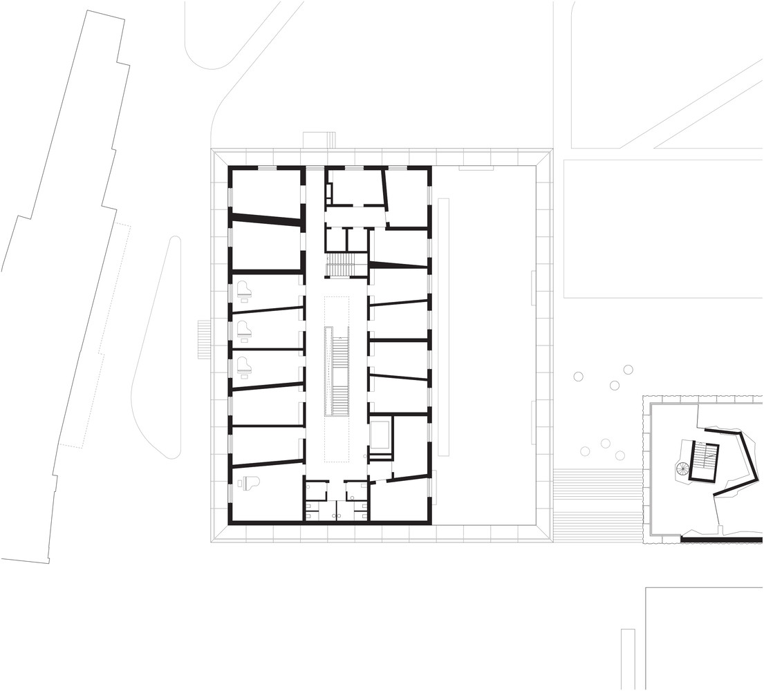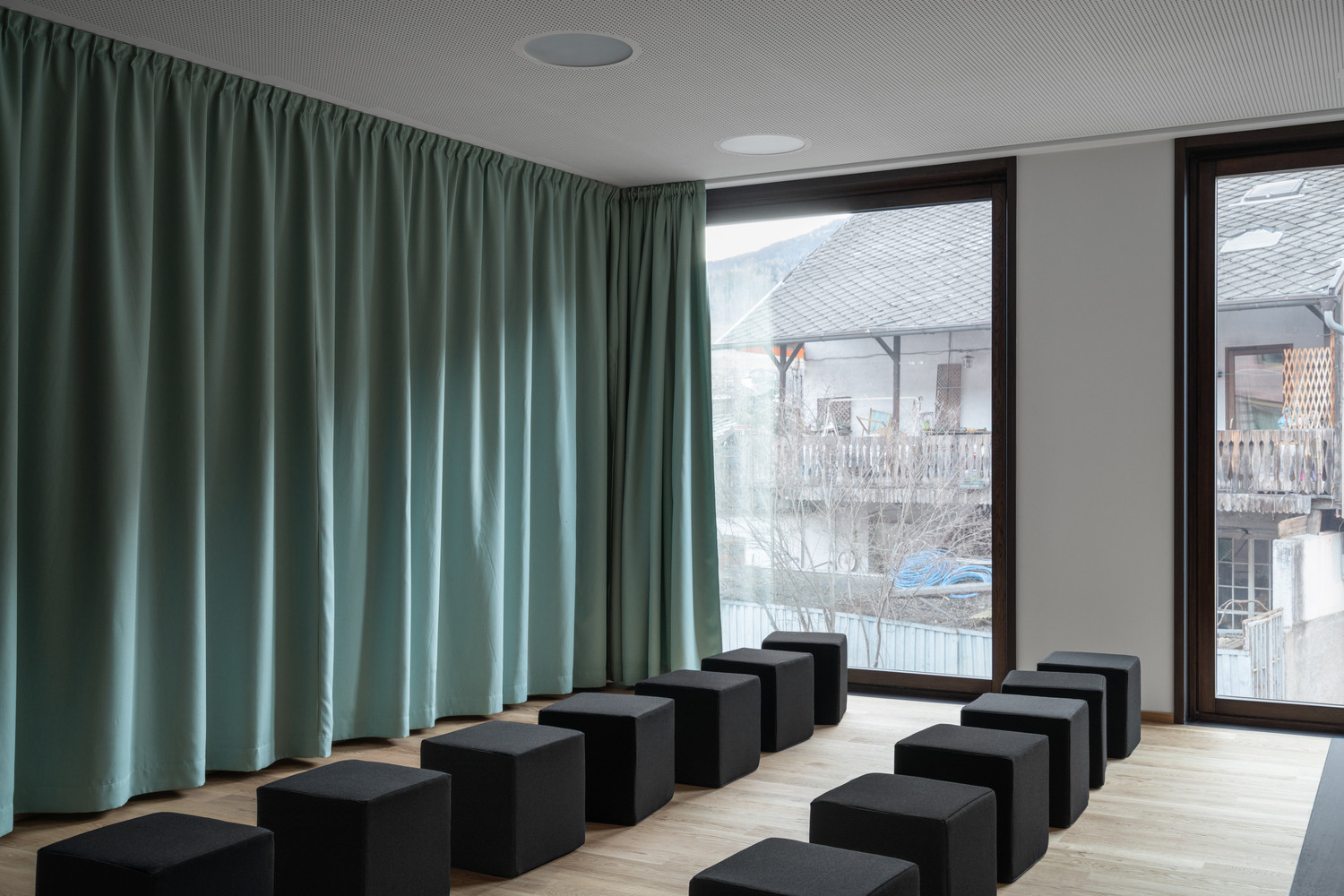 Budova školy se však nerozrůstá ani tak do výšky, jako spíše do stran. Není zde od toho, aby své okolí pohlcovala, ale propojovala. Realizace hudební školy v Brixenu nebyla důležitá pouze pro samotnou instituci, ale pro celé město – přijala totiž významnou urbanistickou roli. Stala se součástí širšího plánu na proměnu celé jedné části města, kde se nachází třeba i plavecká nebo horolezecká hala.