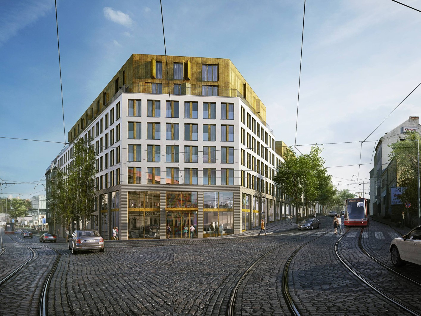 “Navrhujeme vykřesat zpět krásné městské prostředí, zpevnit rozbitou uliční strukturu a umožnit tak výstavbu příjemných a bezpečných ulic,” píší architekti. “Navrhujeme dům, který bude moderní svým technickým vybavením, ale vědomě tradiční svým kompozičním uspořádáním, aby byl jednou z prvních hrdých staveb, na cestě k oživení Holešovic v pulzující a atraktivní městskou čtvrť.